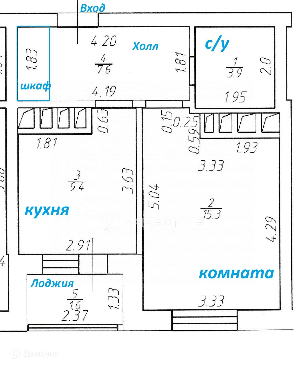 -комната 15,3 м2