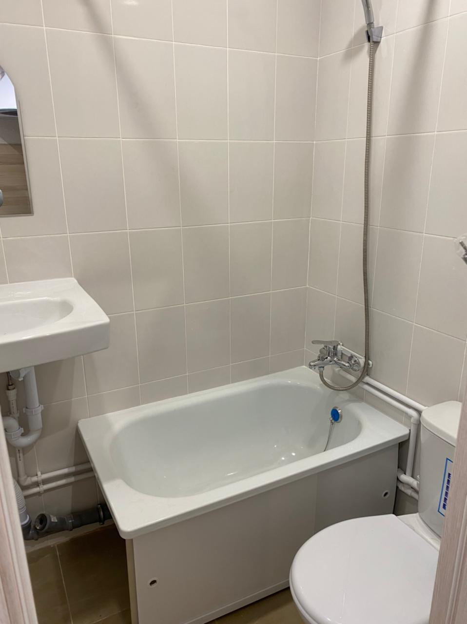 - В сан узле кафель , новая сантехника , полотенцесушитель ;
