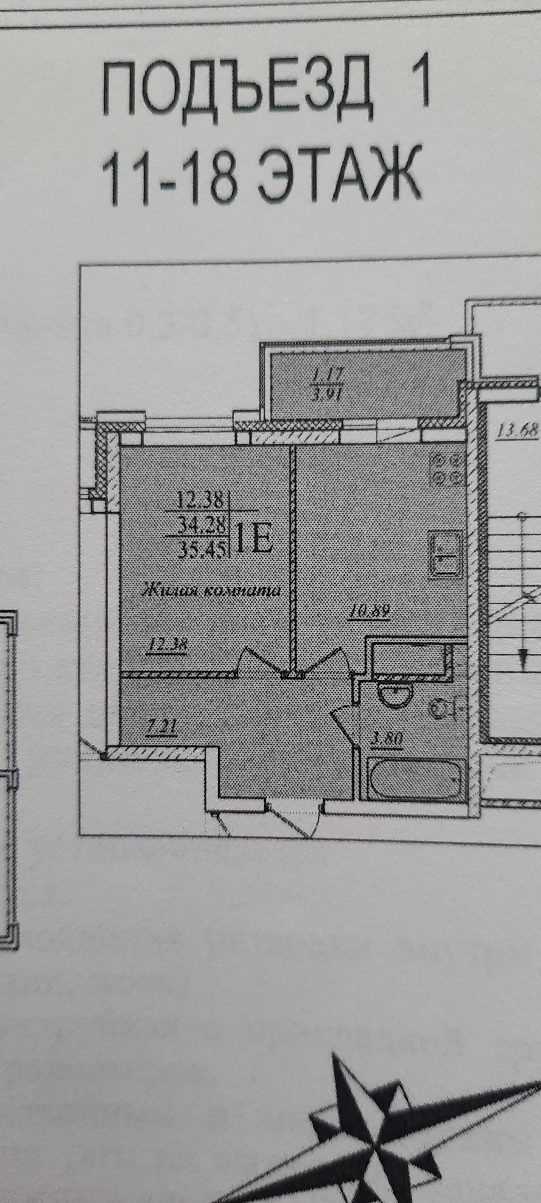 Жилая площадь 12.38 м2