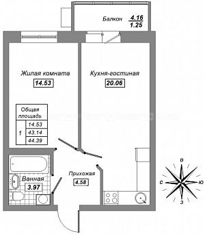 Общая площадь 44.5 м2