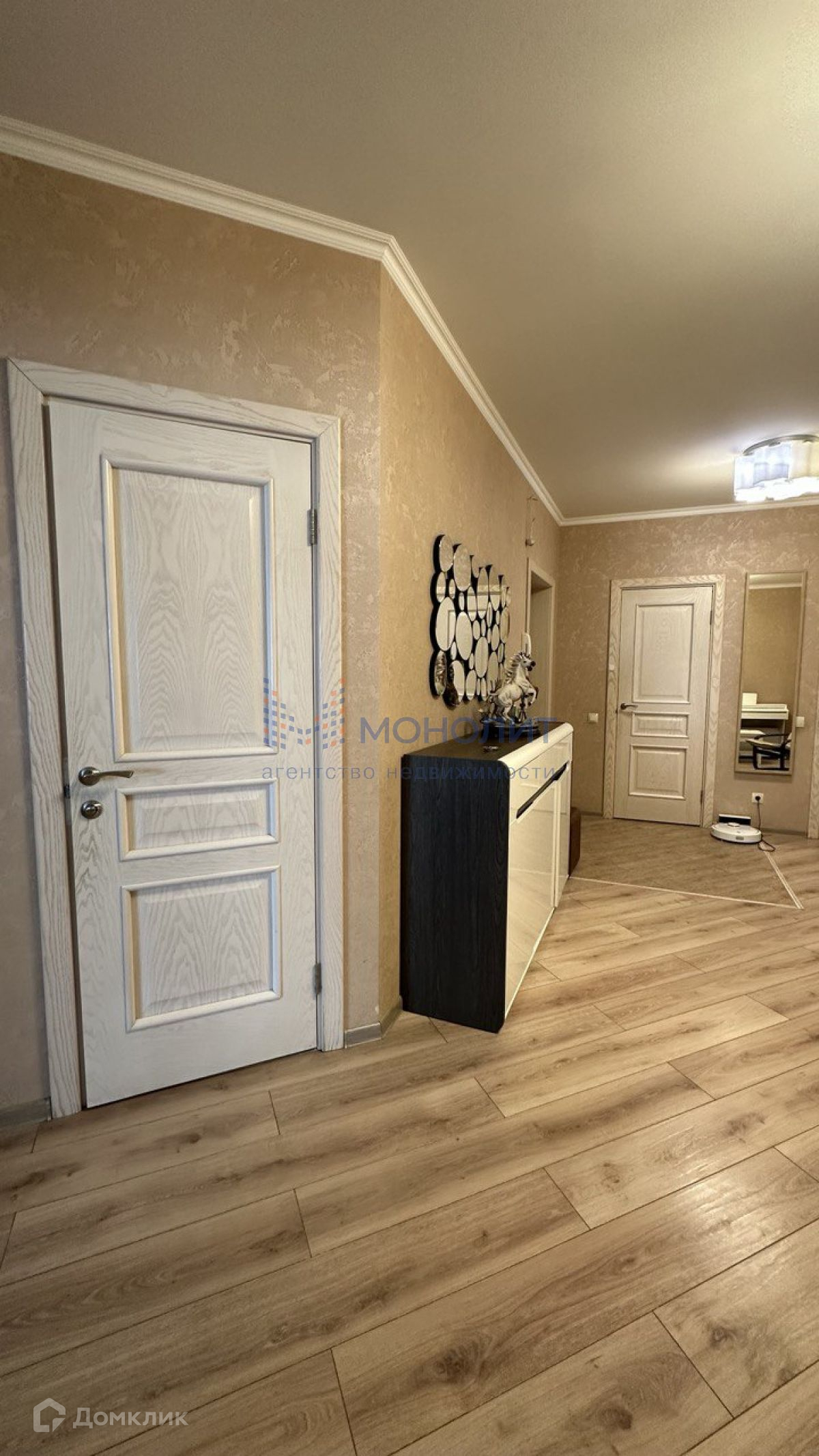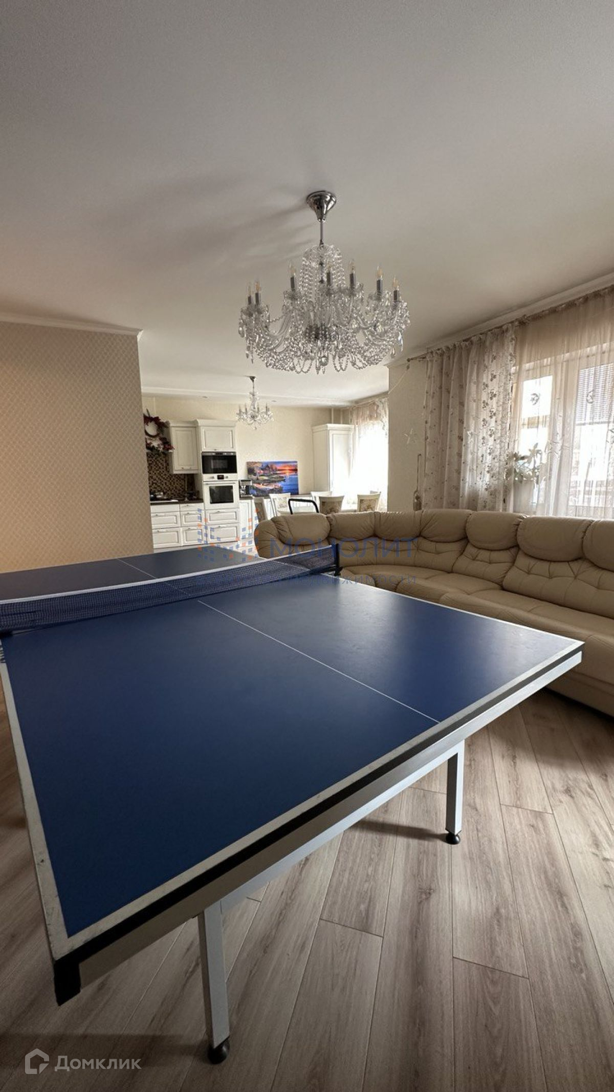 При входе в квартиру расположена гардеробная, просторная гостинная, совмещенная с кухней, 3 полноценных спальных комнаты, одна из которых с собственным туалетом. В квартире 2 санузла, кабинет. Имеется 2 застекленных лоджии.