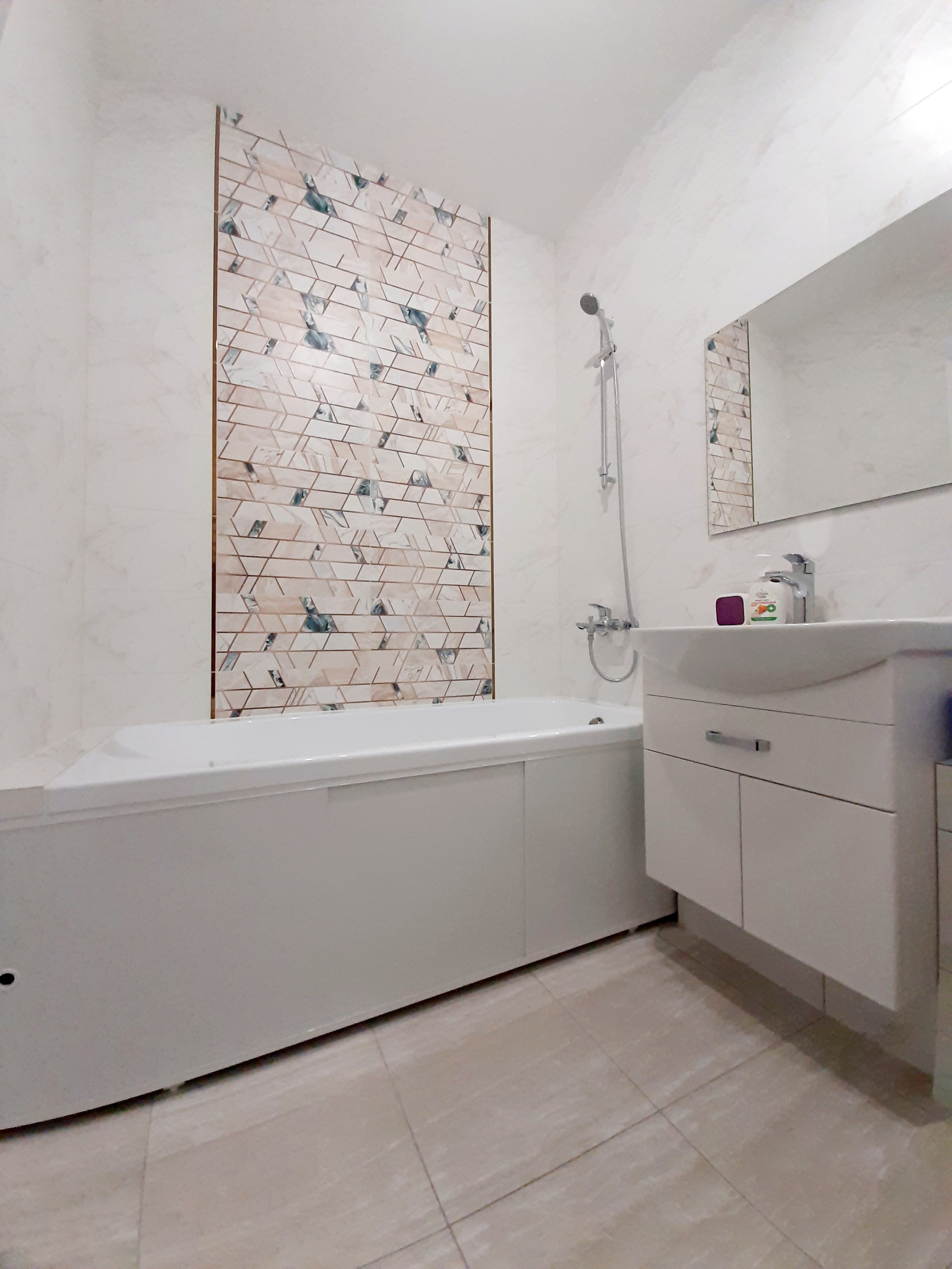 Полная гидроизоляция мокрых точек в ванной + использована эпоксидная затирка , для исключения влажности , потемнения швов, и т.п