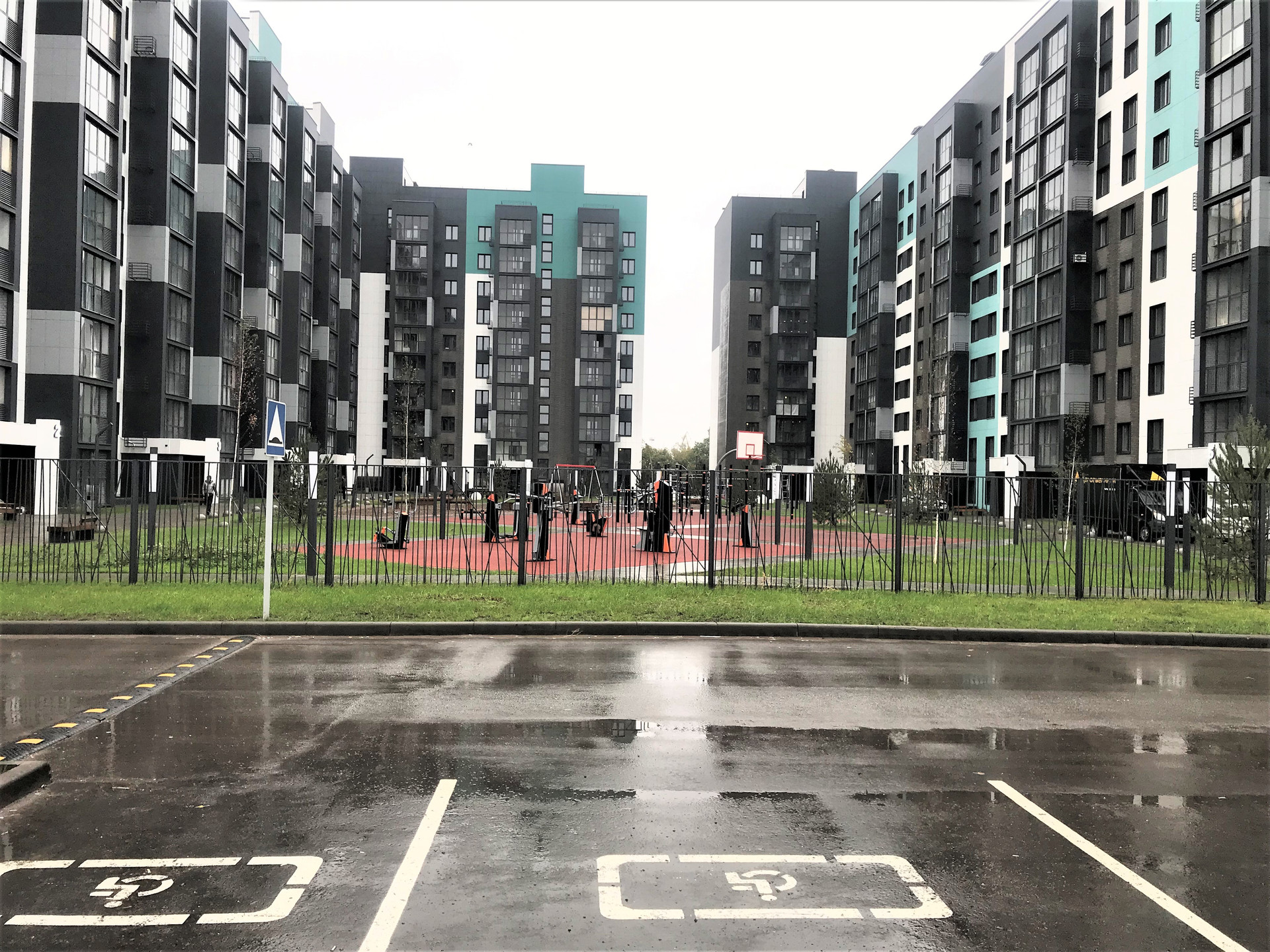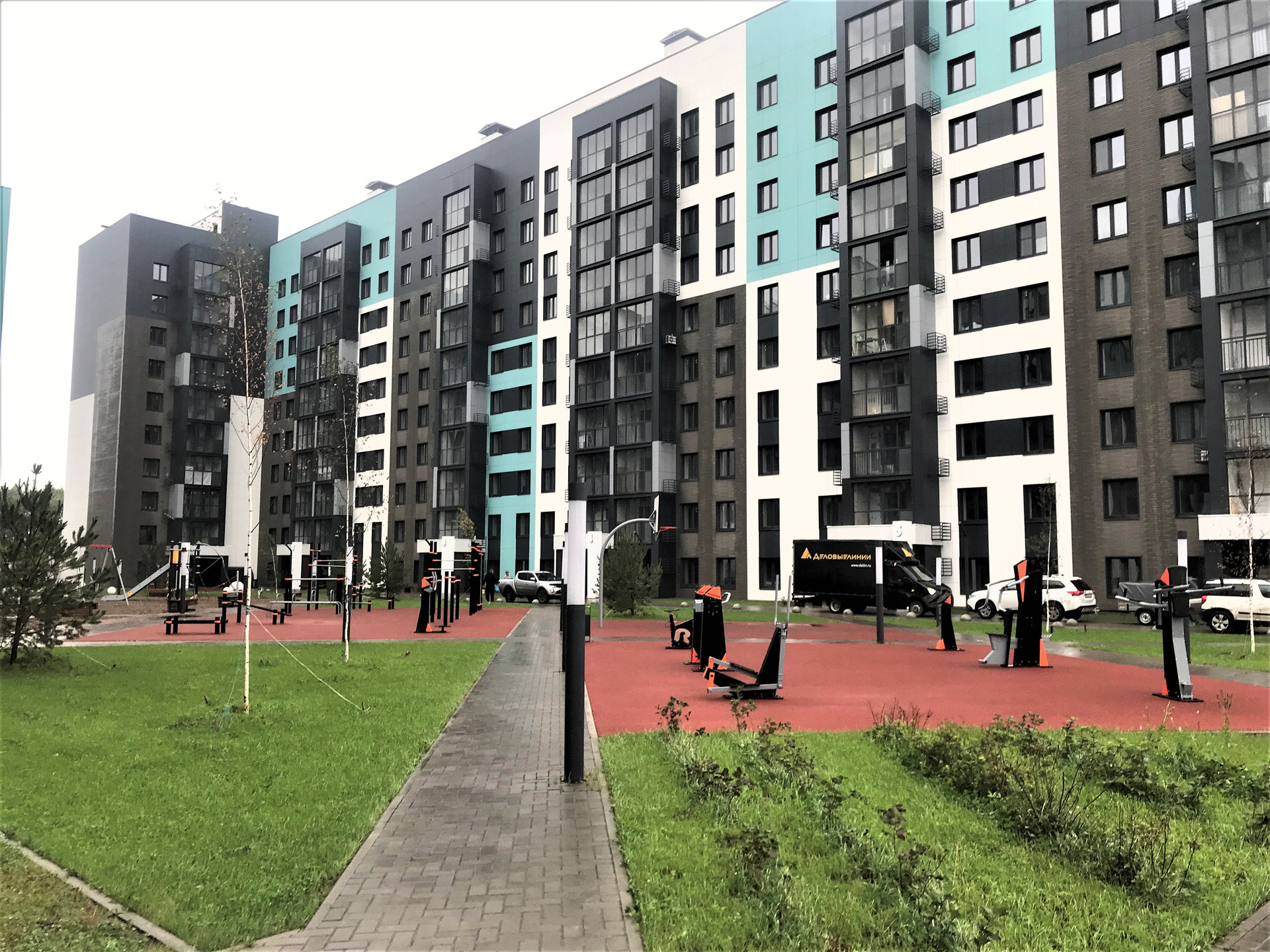 Шикарная придомовая территория. Наземный паркинг Закрытый двор без машин. Отдельная спортивная зона.  Коммерческие помещения на 1 этаже по ул. Портовая.