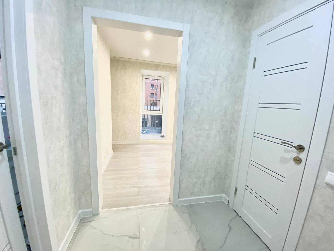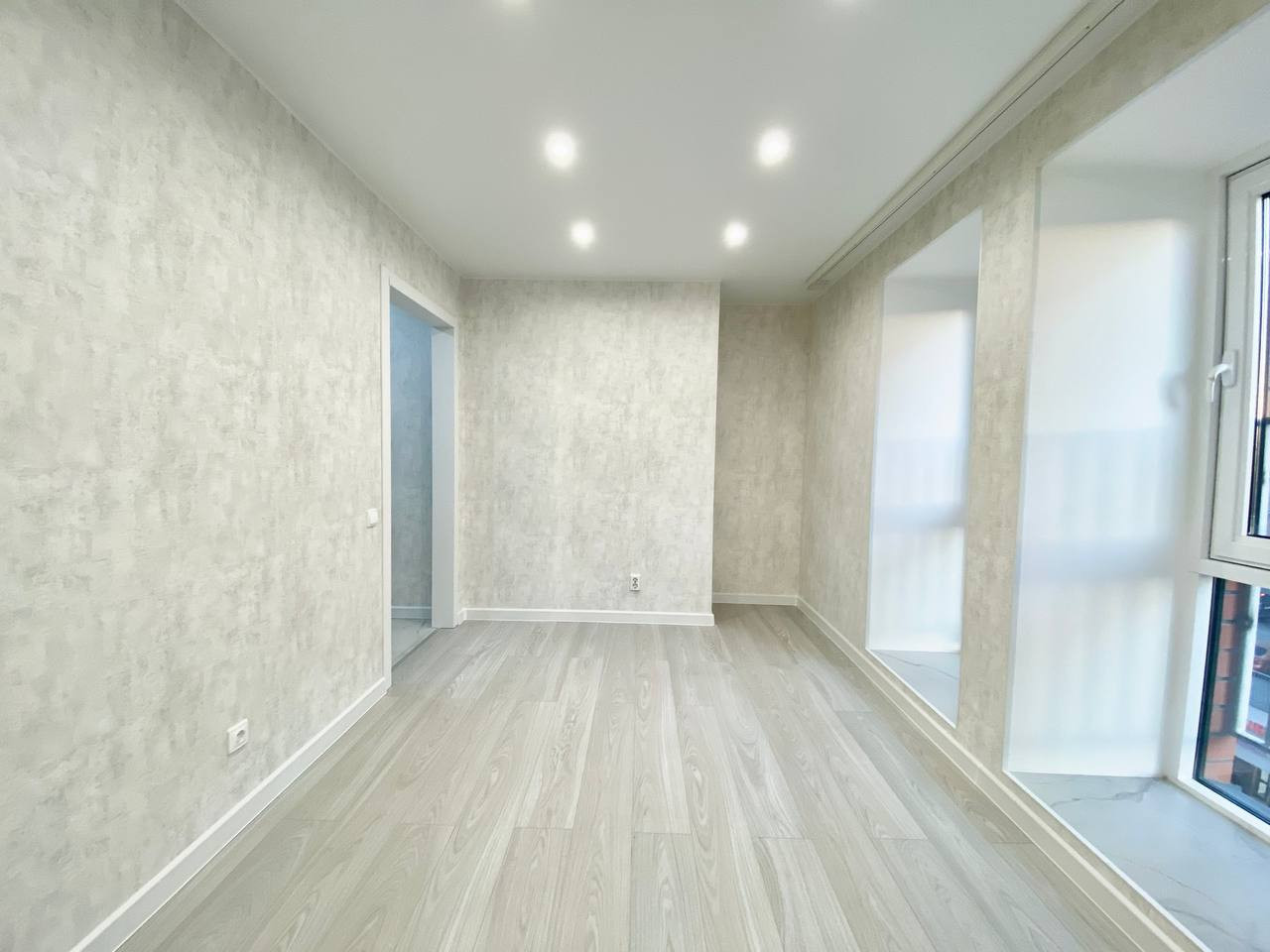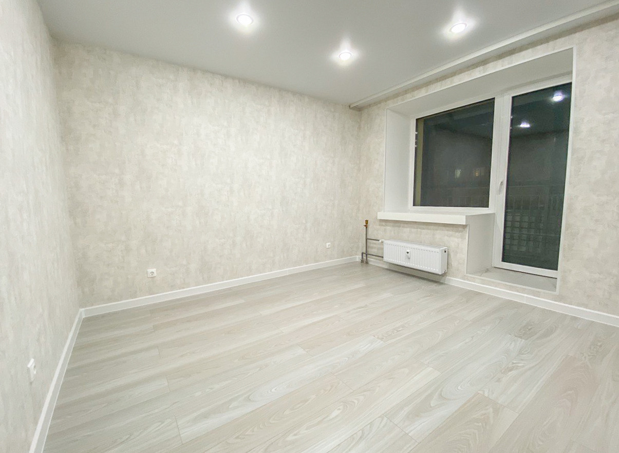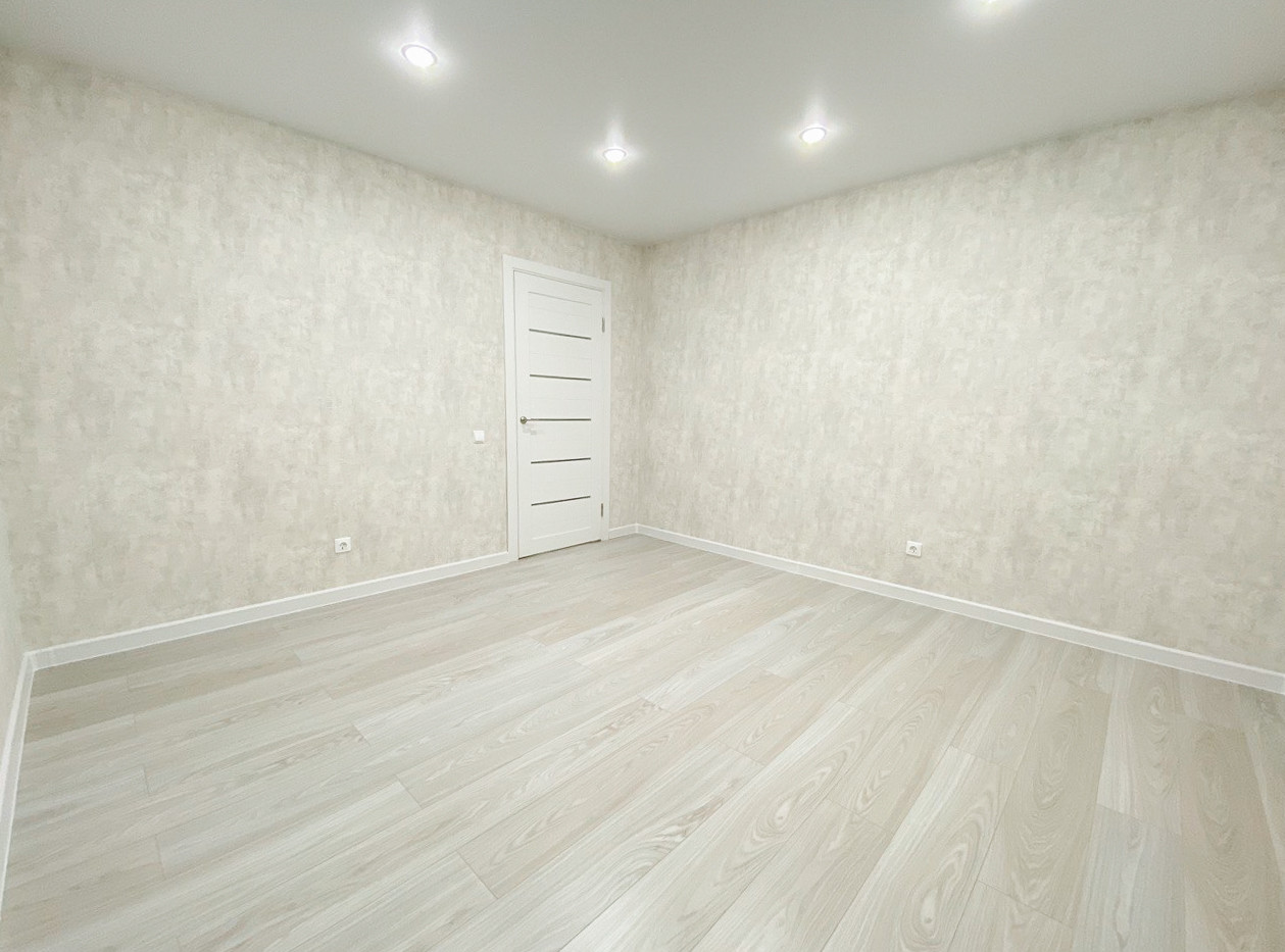 В квартире сделан новый евроремонт. Установлены натяжные потолки, на полу в комнате - ламинат, на кухне, в ванной комнате и в коридоре  - керамогранит.