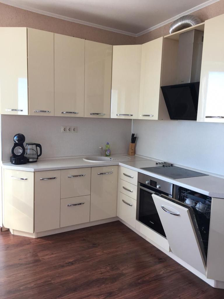 Качественный кухонный гарнитур с фурнитурой Blum, установлена посудомоечная машина.