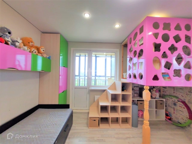 - детская комната 16,5 кв.м. имеет выход на панорамную лоджию с видом на Проспект. Установлена стильная, яркая, детская мебель с игровой зоной. Дети будут в восторге!