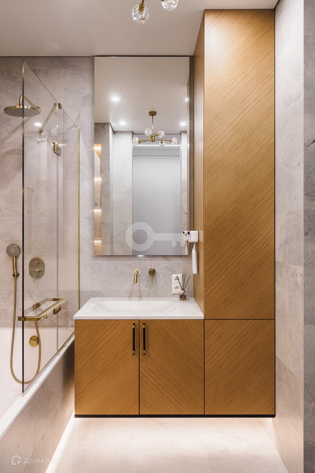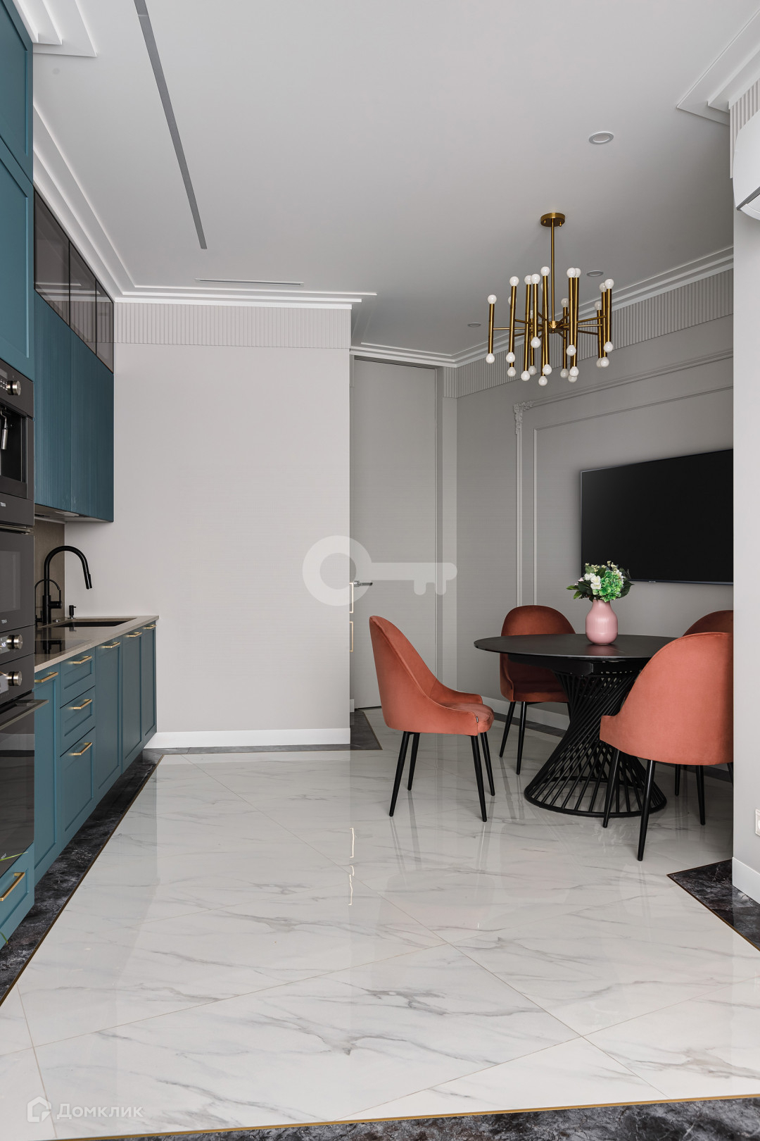 Все необходимые бытовые приборы включены: духовой шкаф, варочная поверхность, вытяжка, микроволновая печь, холодильник, кофемашина, стиральная и сушильная машины, кондиционеры, водонагреватель, система вентиляции.
