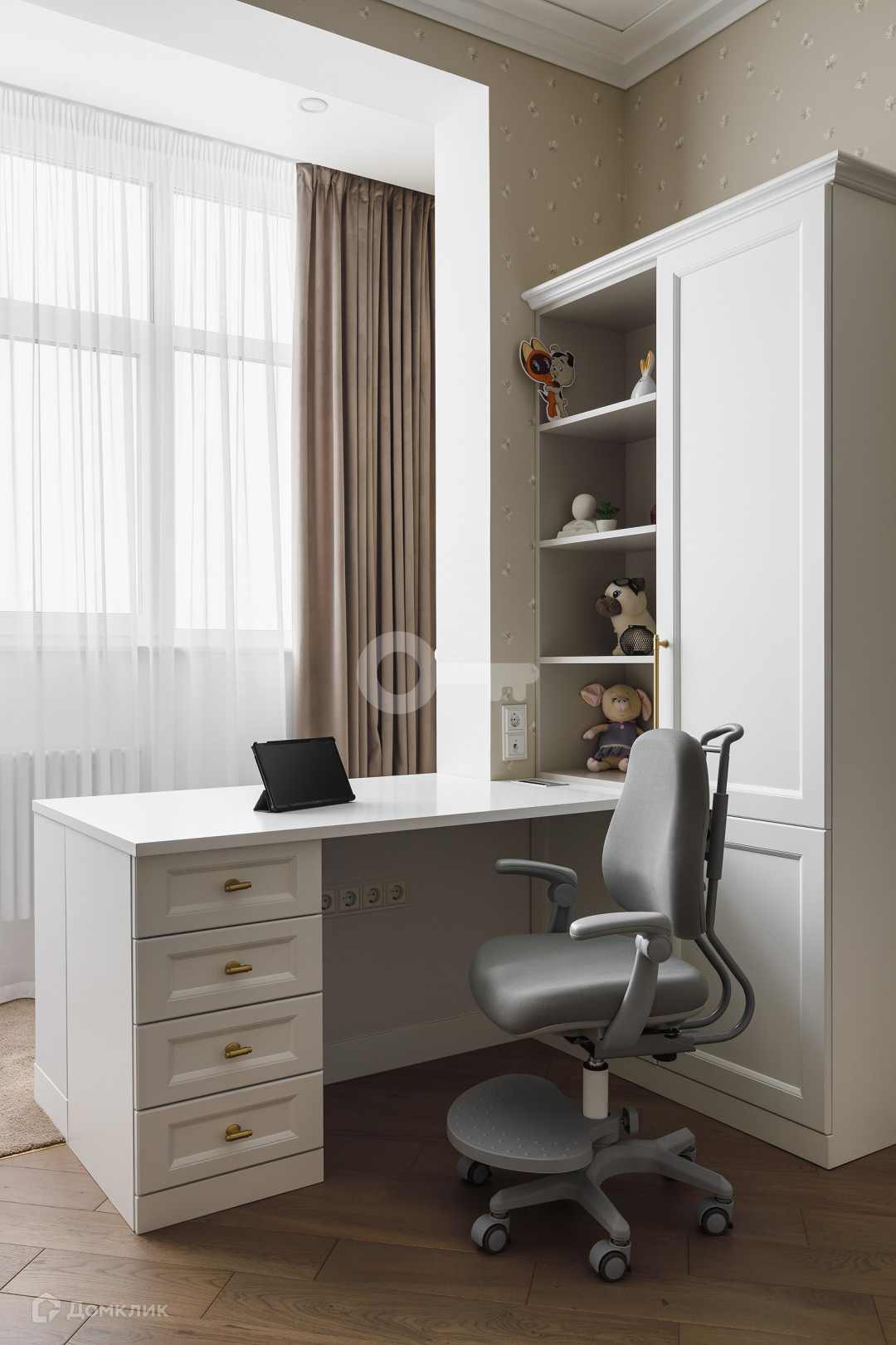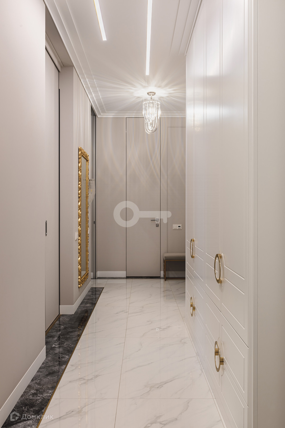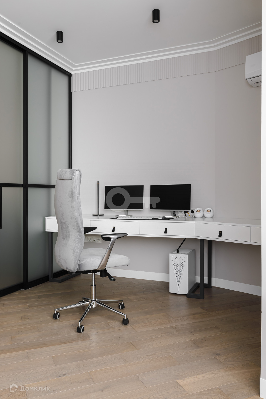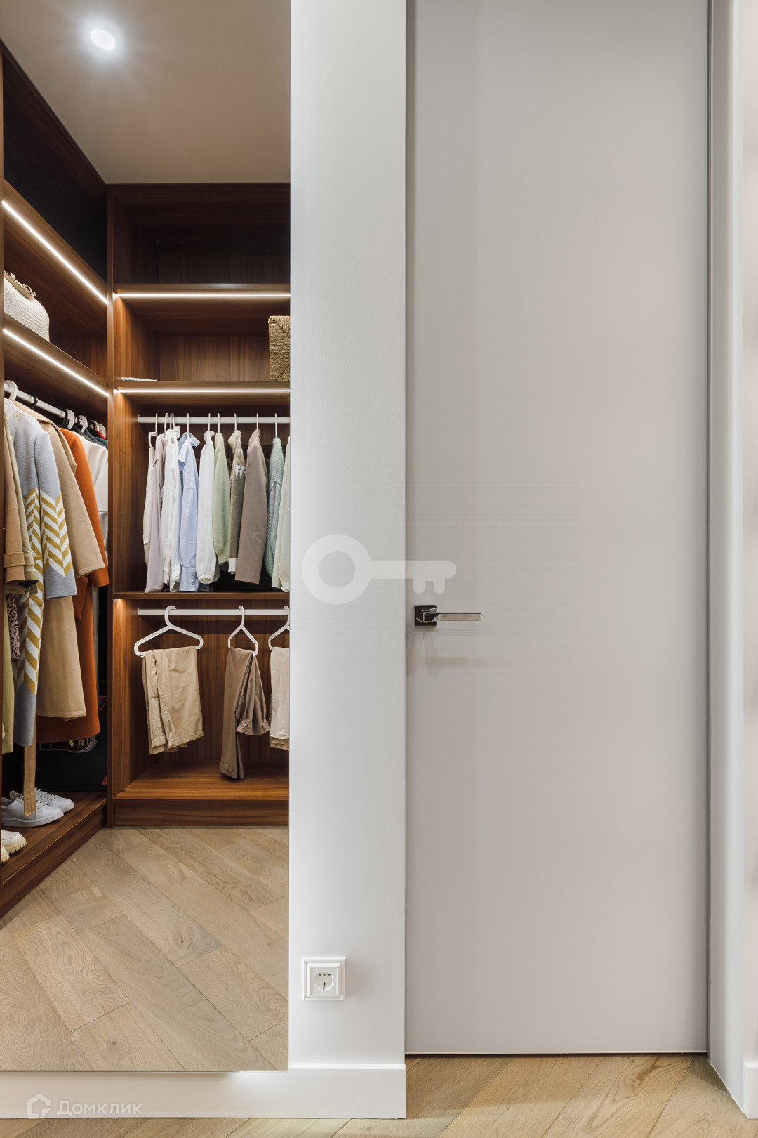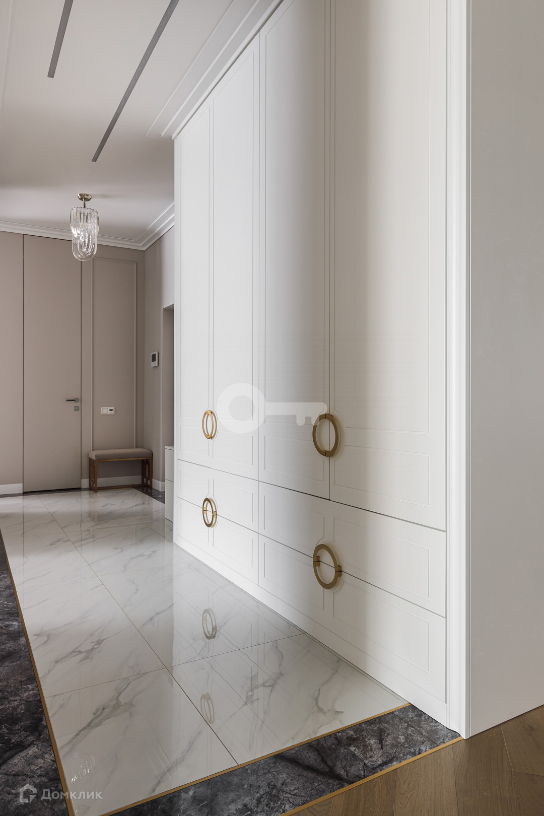 Квартира предлагает следующие особенности: стены под покраску, двери скрытого монтажа вплоть до потолка, применена шумоизоляция, имеются теплые полы, настил из паркета, гардеробная комната с системой хранения, отдельное помещение для стирки и многое другое.