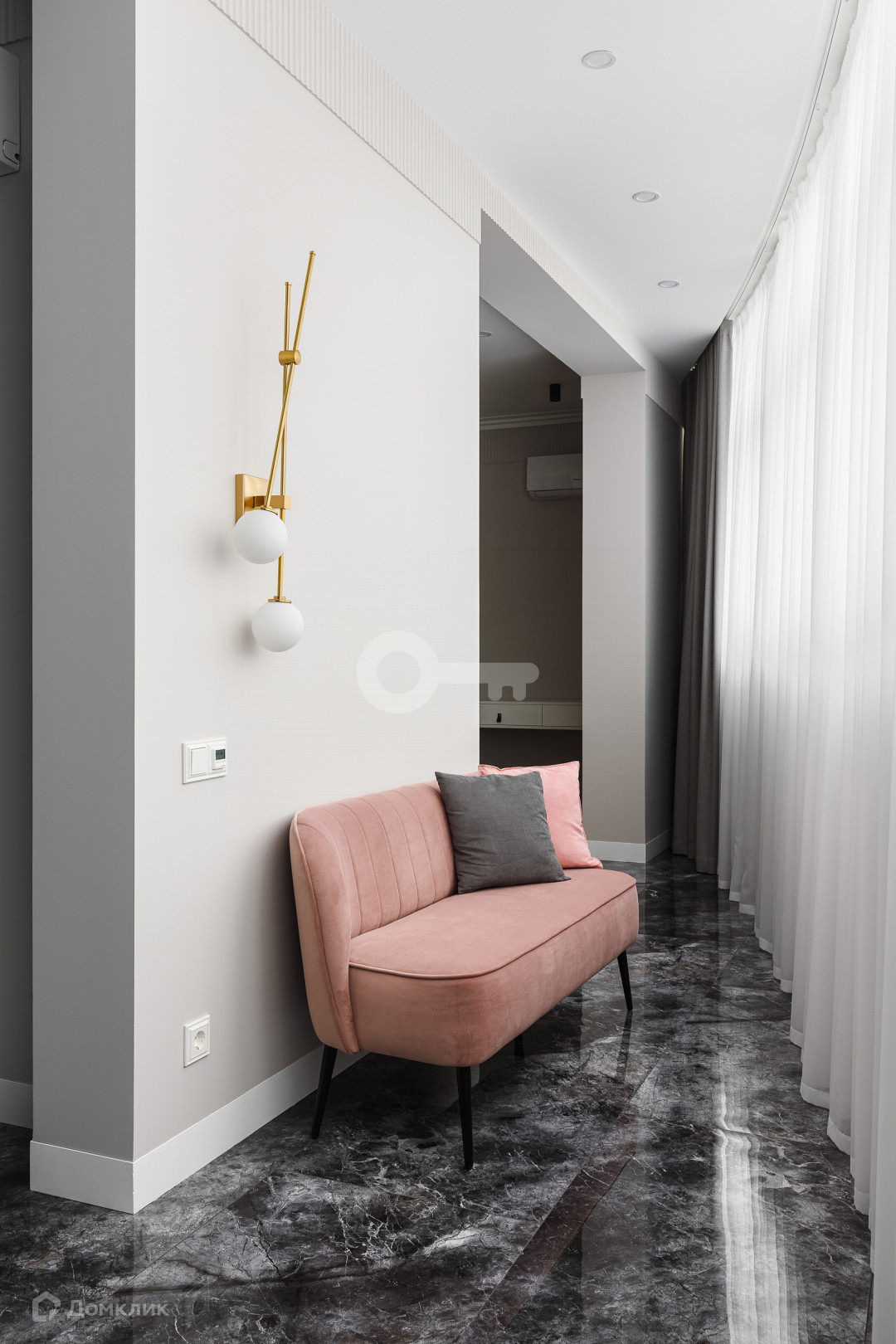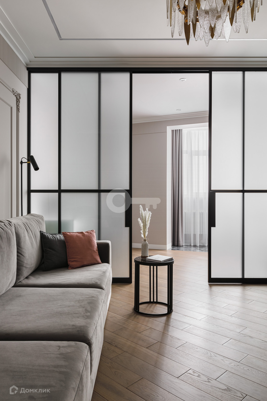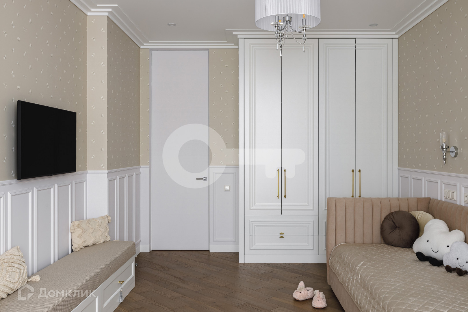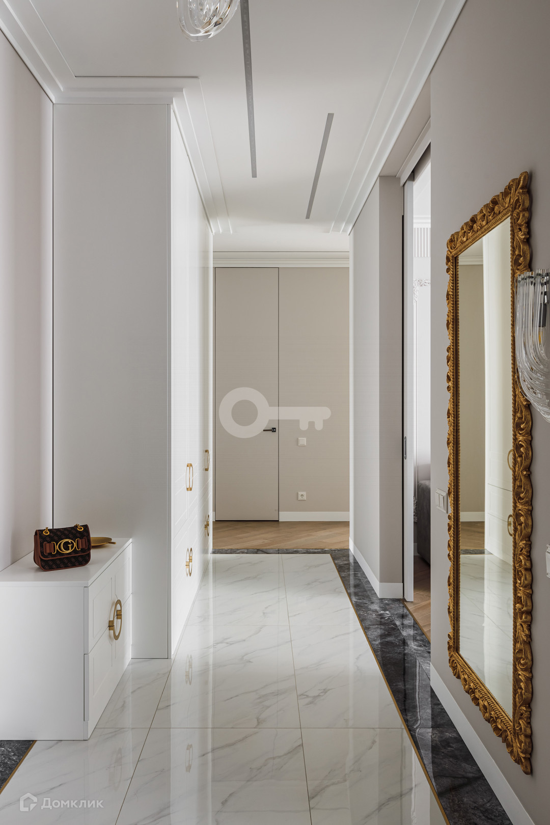 Квартира предлагает следующие особенности: стены под покраску, двери скрытого монтажа вплоть до потолка, применена шумоизоляция, имеются теплые полы, настил из паркета, гардеробная комната с системой хранения, отдельное помещение для стирки и многое другое.