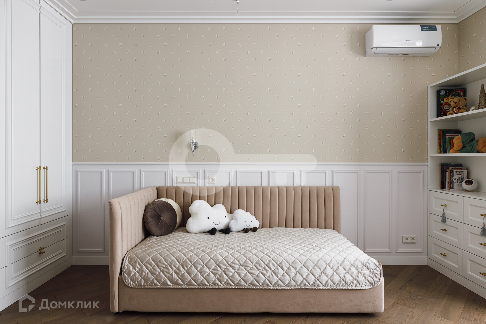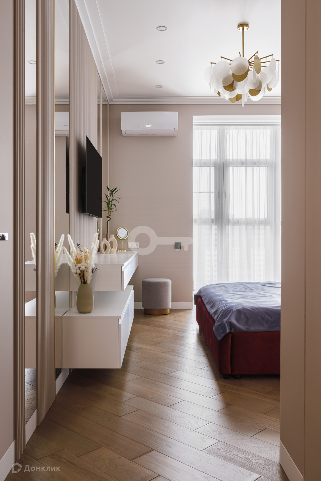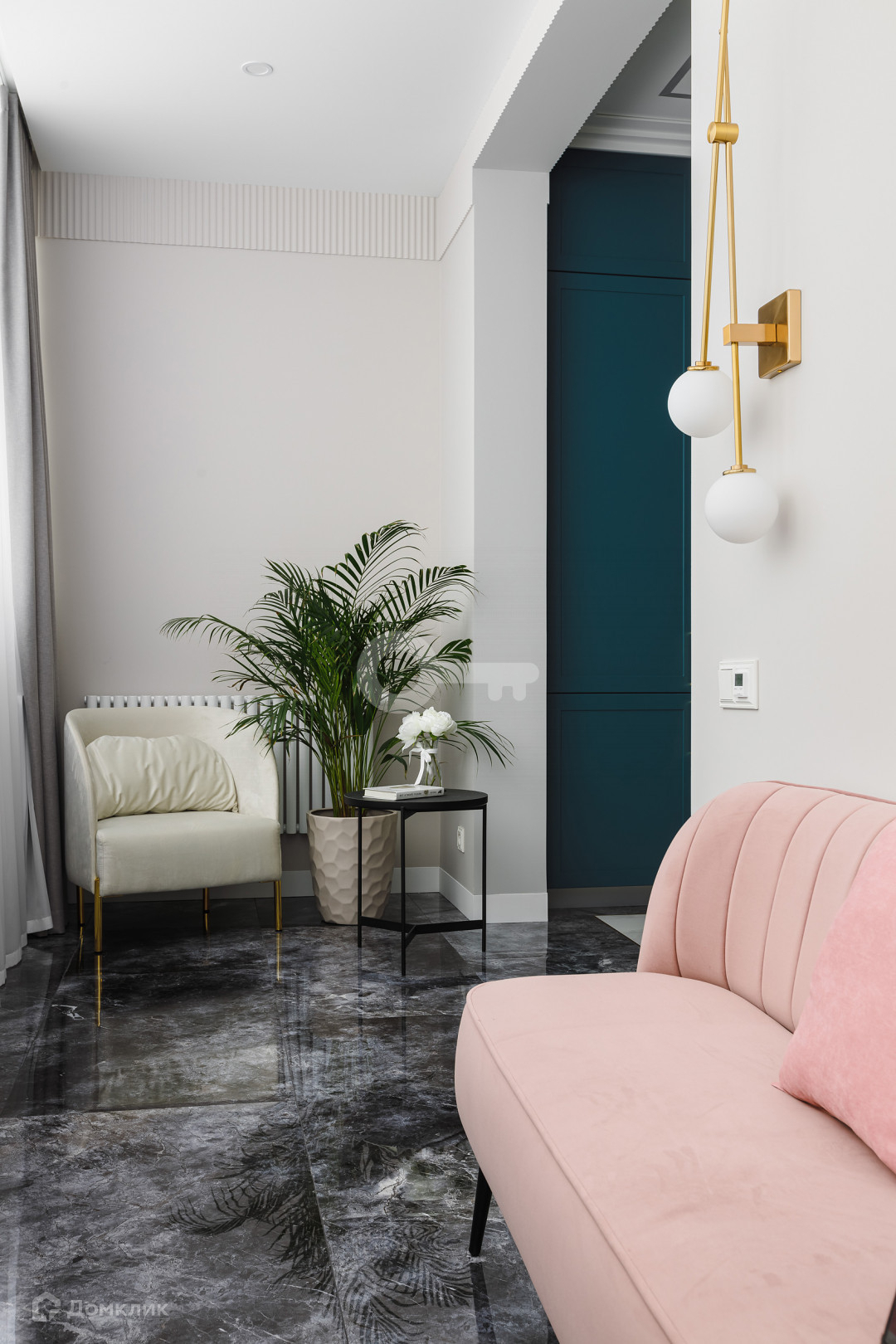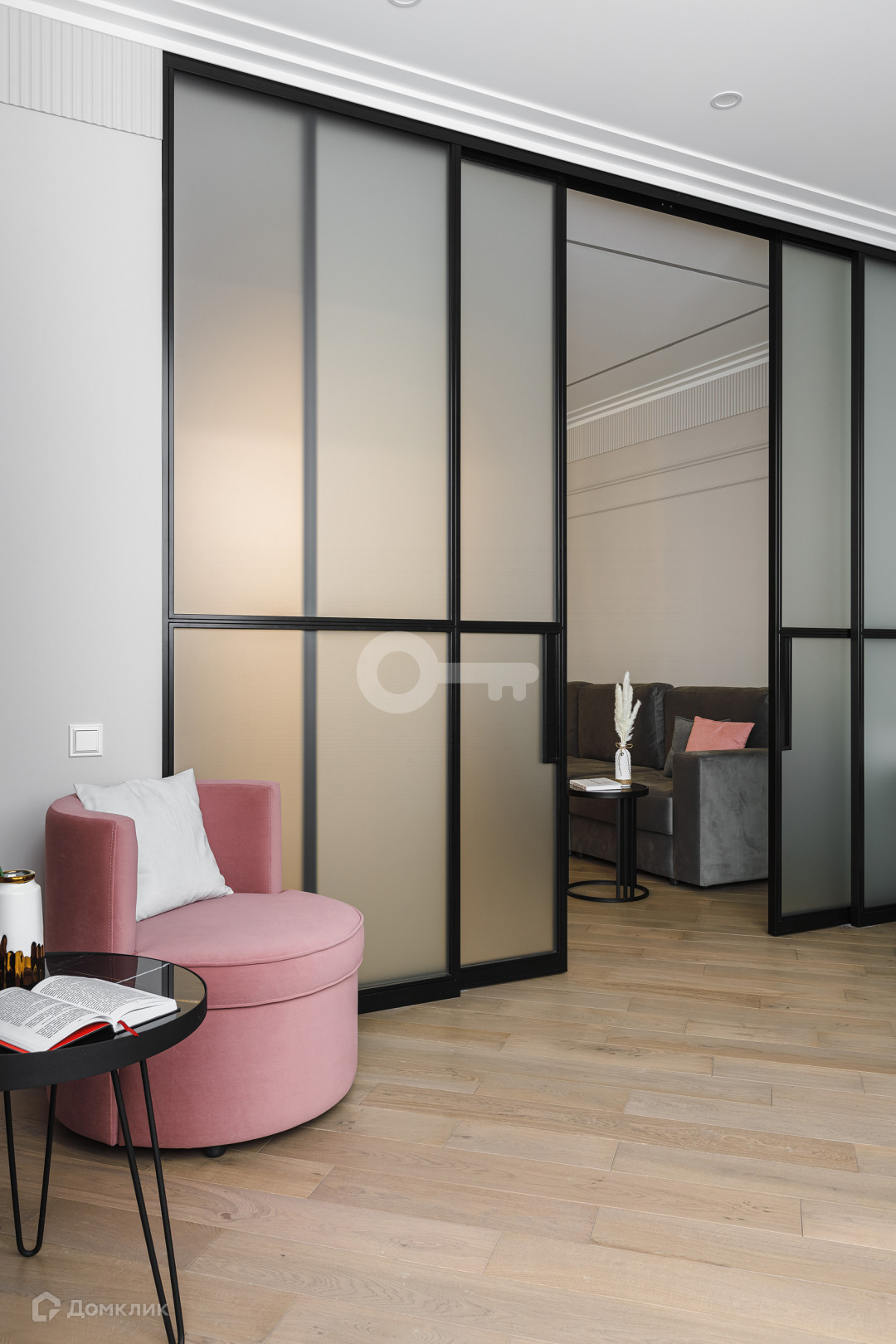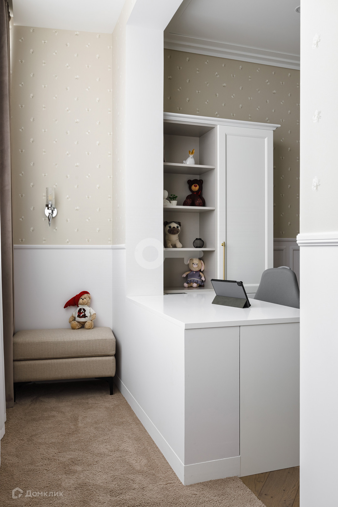 Квартира предлагает следующие особенности: стены под покраску, двери скрытого монтажа вплоть до потолка, применена шумоизоляция, имеются теплые полы, настил из паркета, гардеробная комната с системой хранения, отдельное помещение для стирки и многое другое.
