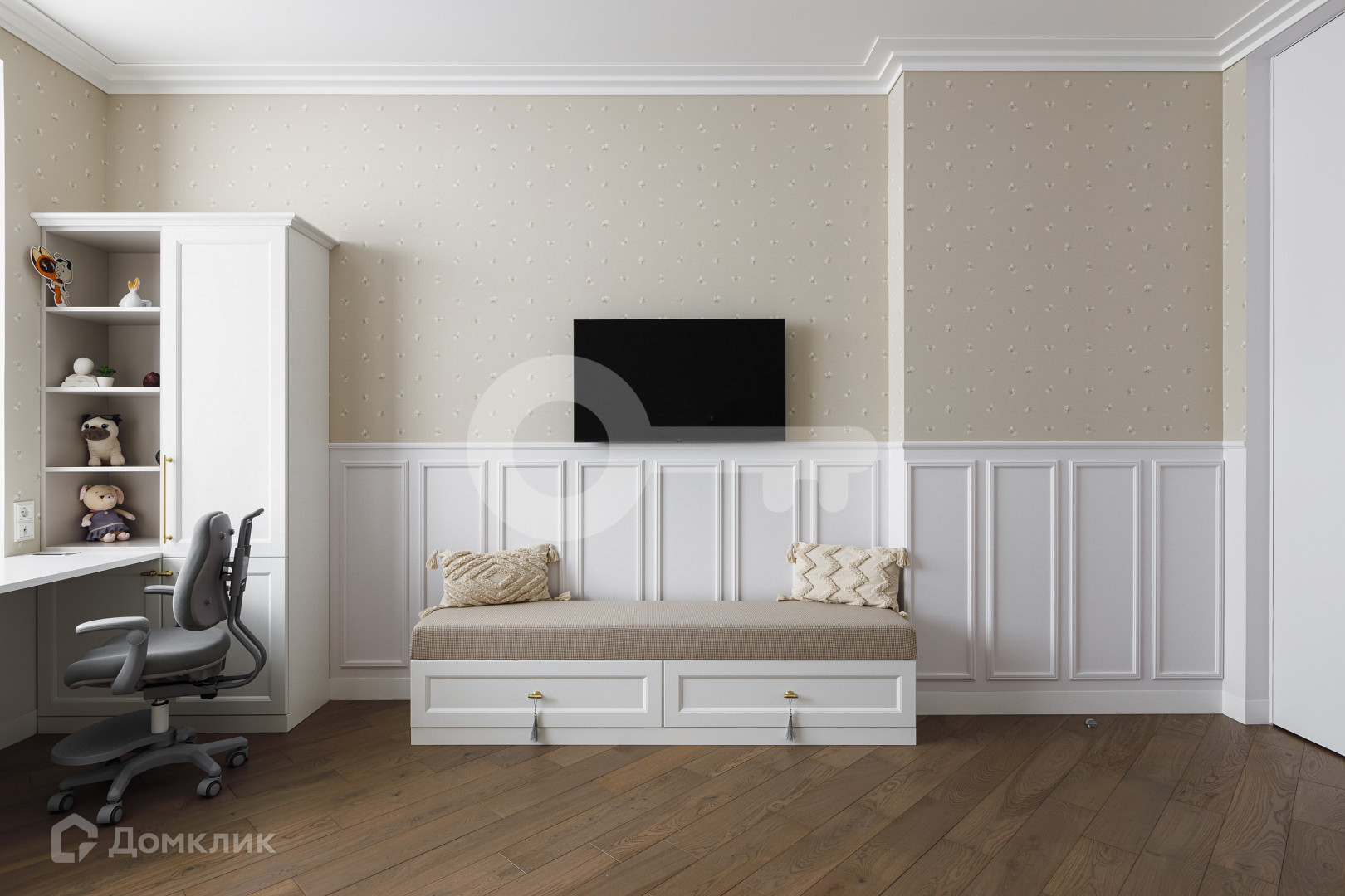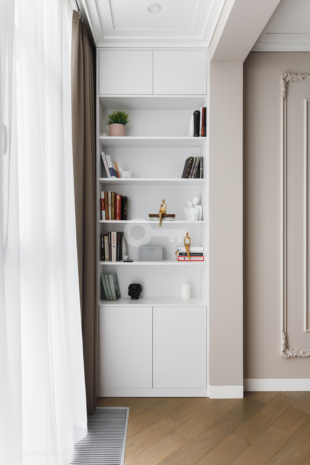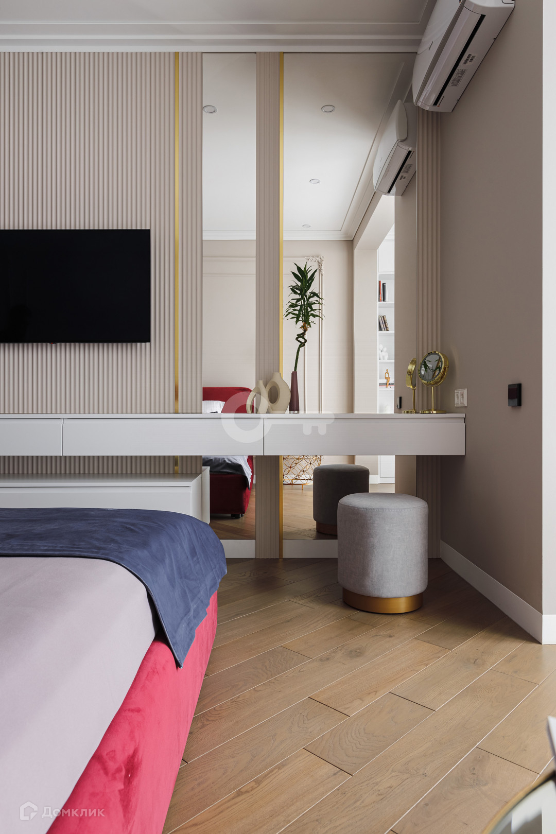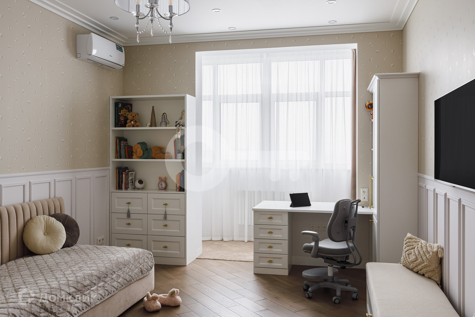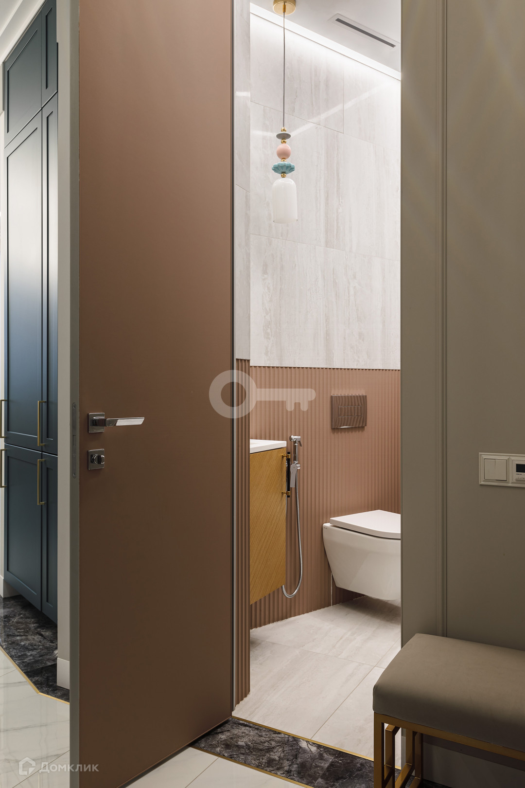 Квартира предлагает следующие особенности: стены под покраску, двери скрытого монтажа вплоть до потолка, применена шумоизоляция, имеются теплые полы, настил из паркета, гардеробная комната с системой хранения, отдельное помещение для стирки и многое другое.
