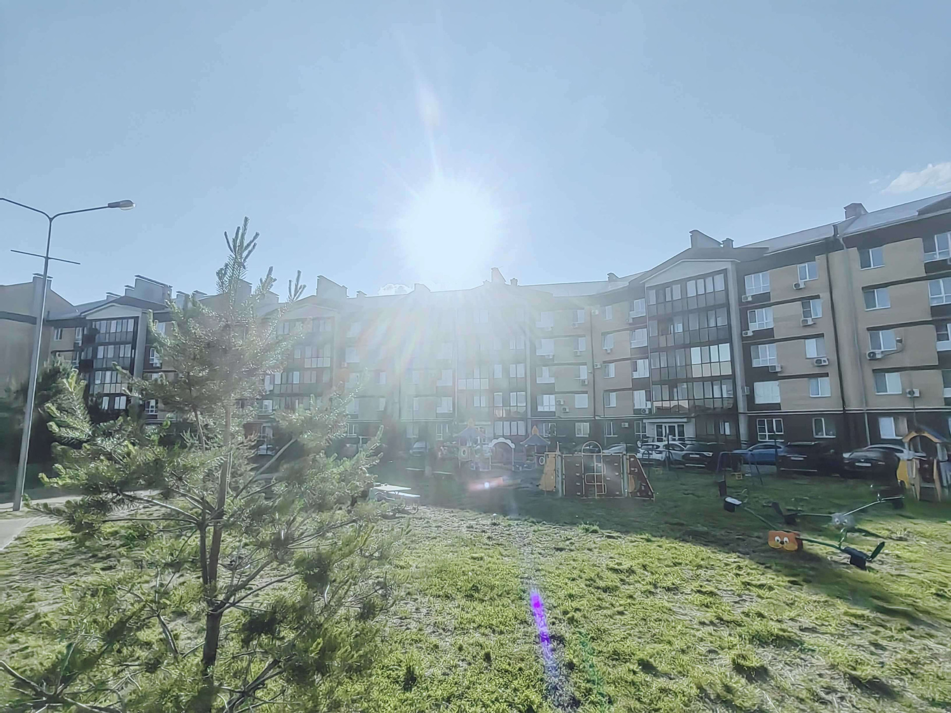 Выходящие во двор окна открывают красивый вид на современную детскую площадку и уютный коттеджный поселок, построенный на берегу. Свежий воздух и отдых от городской суеты круглый год обеспечивает расположение в экологически благоприятной части города.