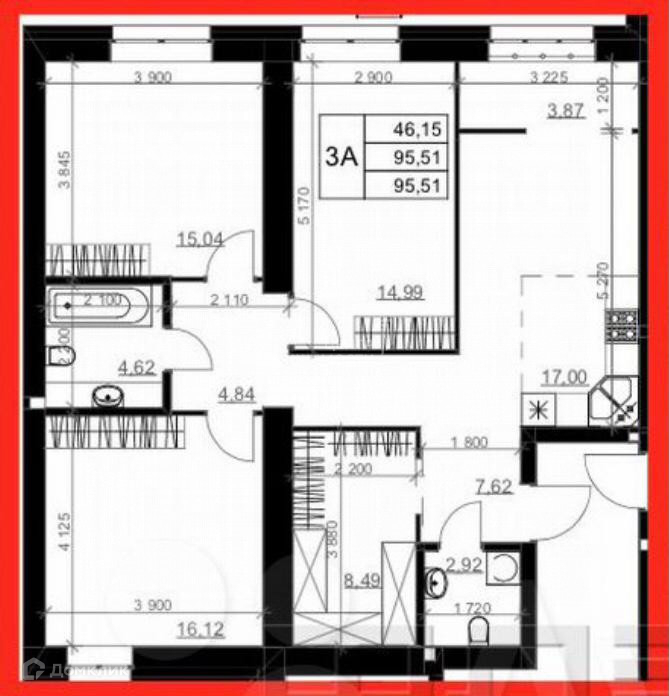 Общая площадь 95.5 м2
