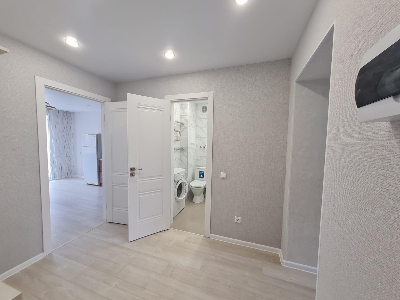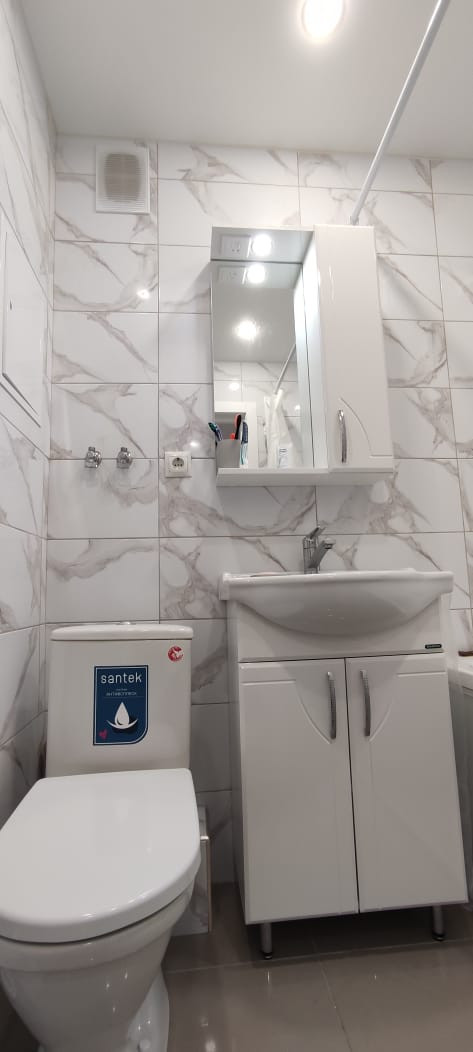 В ванной на полу и на стене современный керамогранит под мрамор. Акриловая ванна,стиральная машина,зеркало с подсветкой,подведена розетка для фен.Подведены трубы на водонагреватель и на гигиенический душ. Установлены счётчики на воду,на электричество. Заведены в квартиру интернет и телевидение.новый кухонный гарнитур,новая электрическая плита,новые стол и стулья. Новая двухспальная кровать с новым ортопедическим матрасом,комоды и телевизор, вид с балкона на тихий двор, французский балкон вид на улицу.