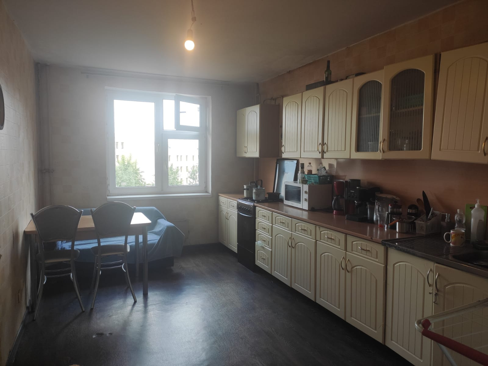 Окна выходят на улицу. Остается: кухонный гарнитур, плита.