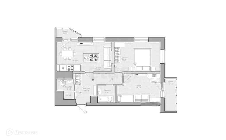 Общая площадь 68.8 м2