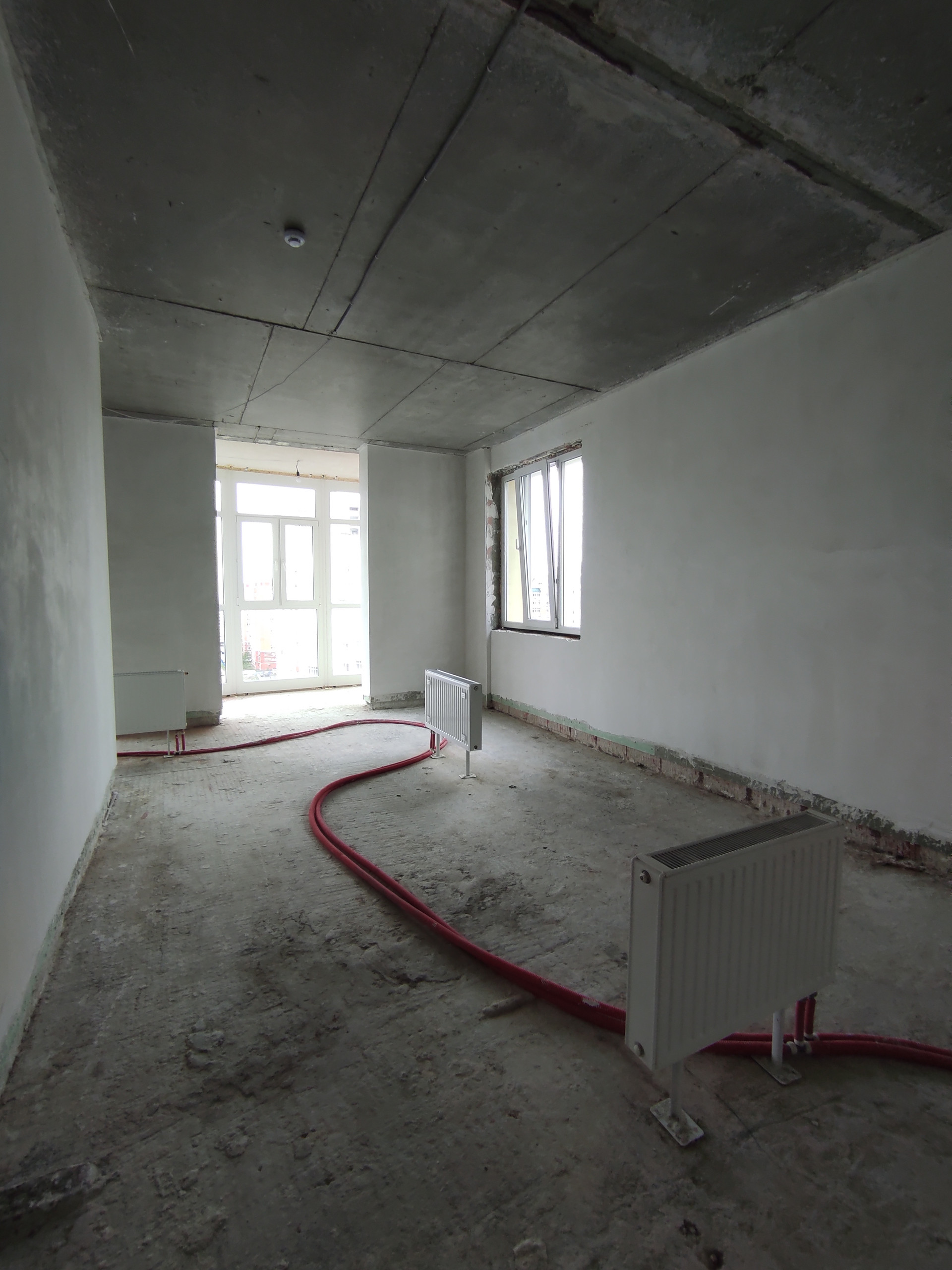 демонтаж перегородок, штукатурки, стяжки от застройщика (~45 тонн строительного мусора);