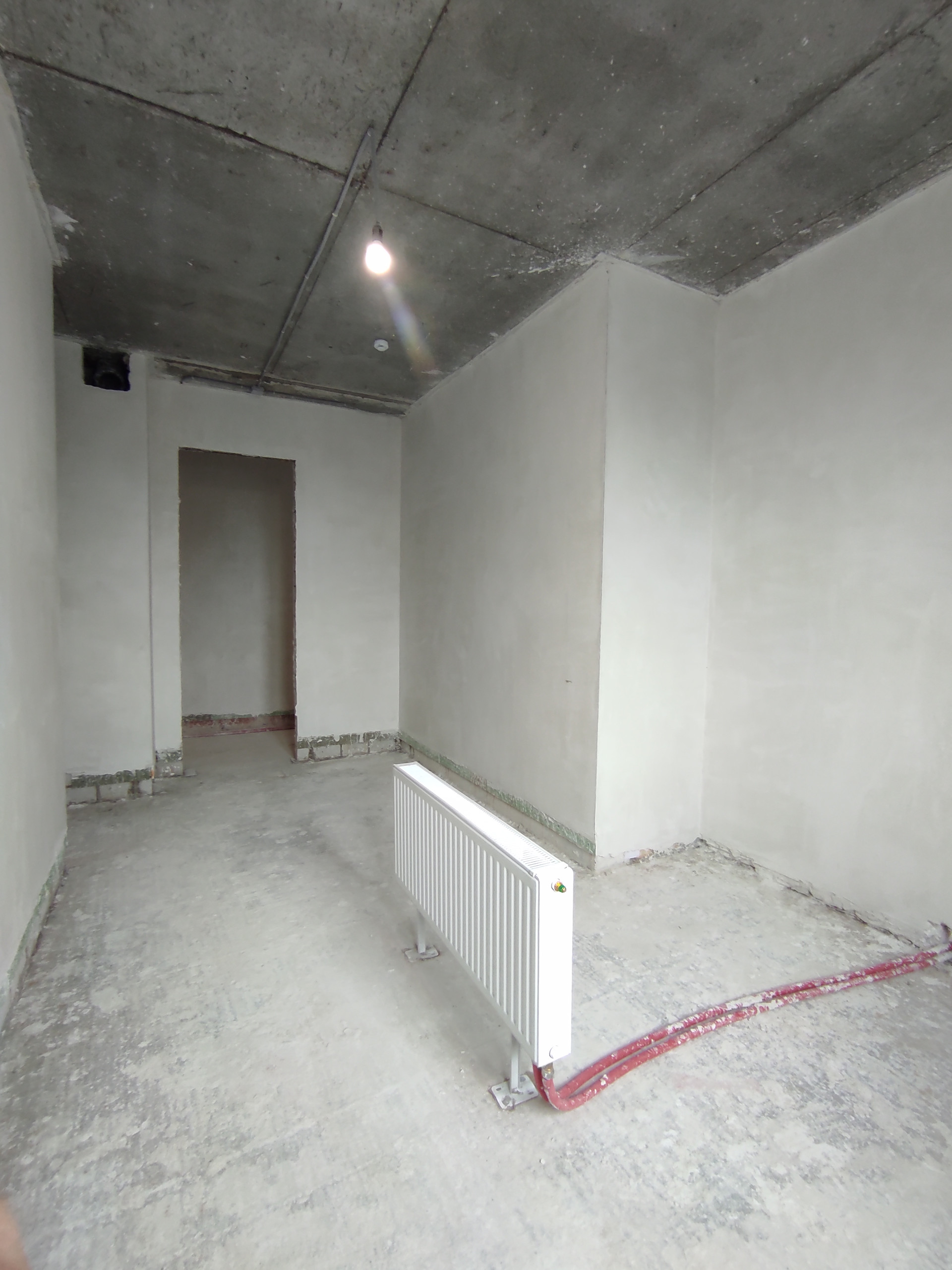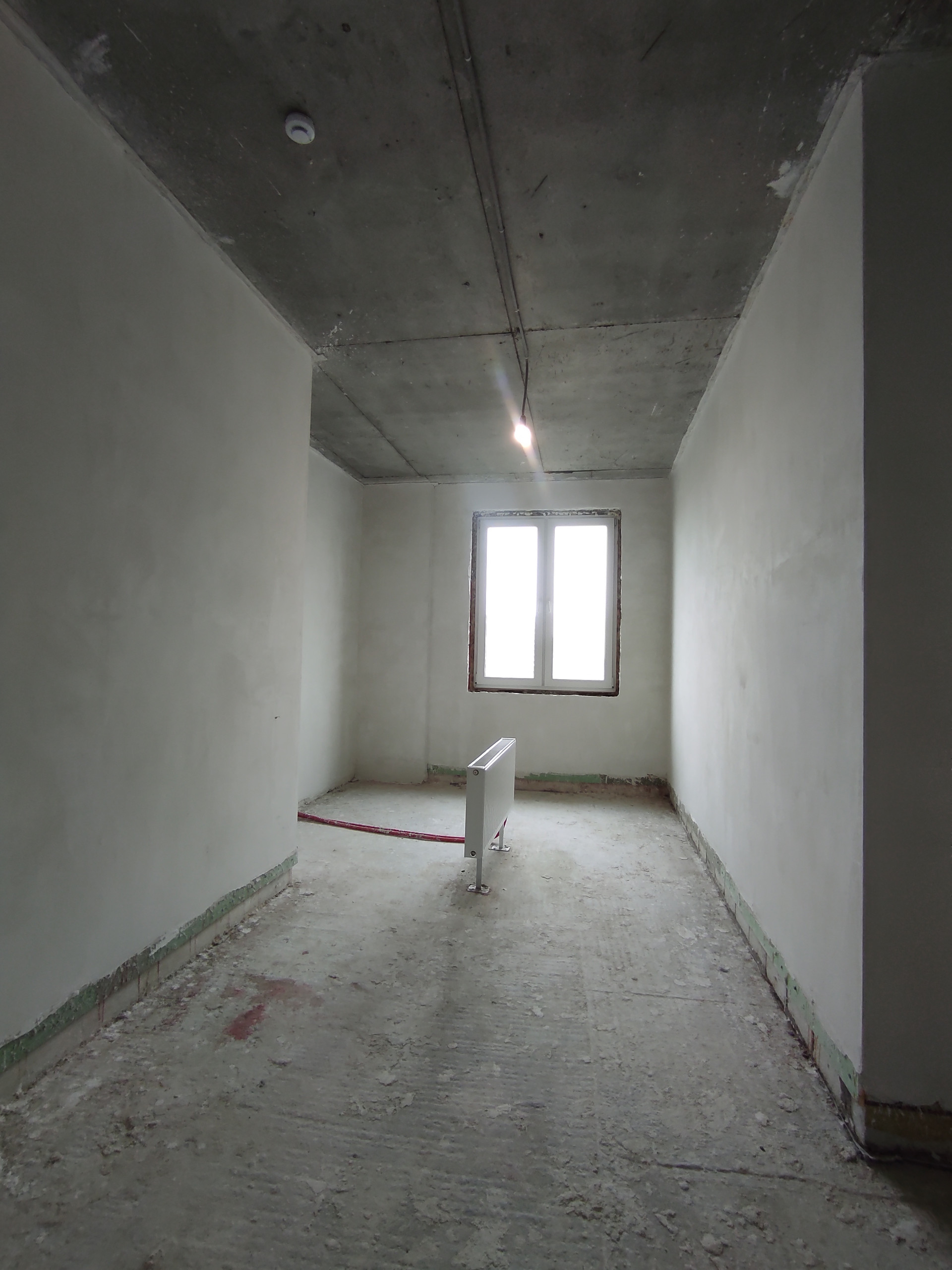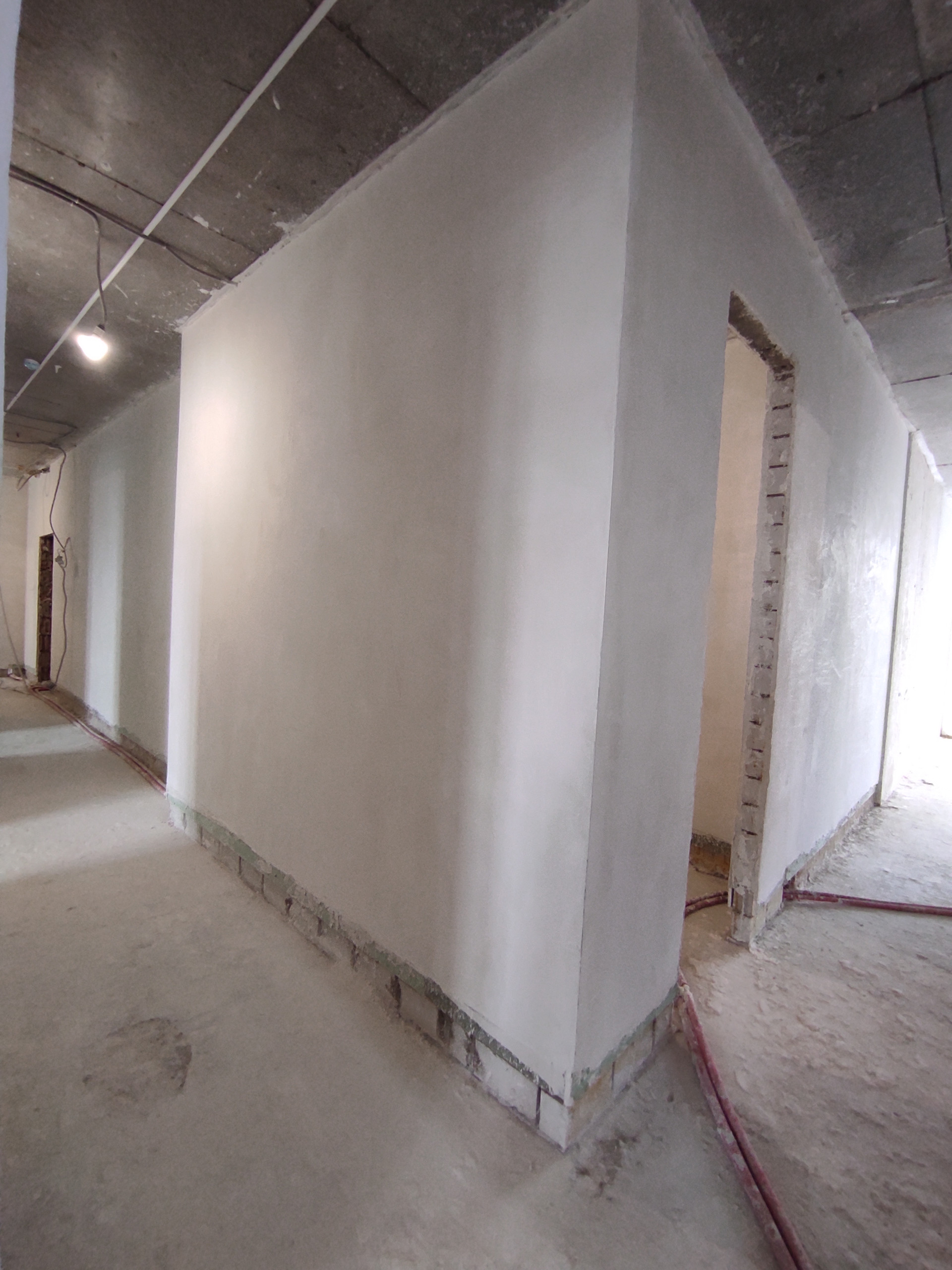 нанесена идеально ровно белая гипсовая штукатурка knauf mp75 под дальнейшую покраску.