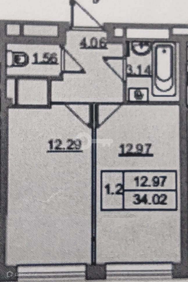 Общая площадь 33.8 м2