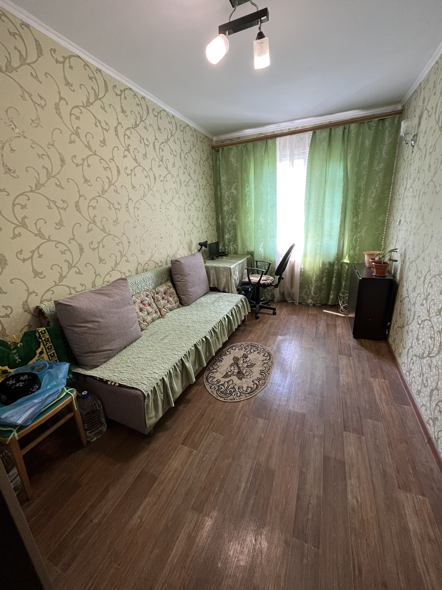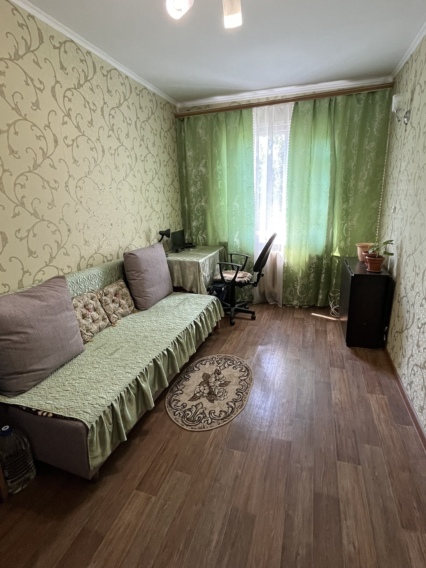 Предлагаю вашему вниманию 2-х комнатную квартиру. Двор  весь в зелени, обустроенный современной детской площадкой. Квартира теплая, светлая, комната проходная по стене, установлены хорошие двери, санузел совмещен (без ремонта), централизованная горячая вода, рядом  школа, детский садик, магазины, остановка. Один взрослый собственник, вся сумма в договоре. Покажем в удобное для вас время.