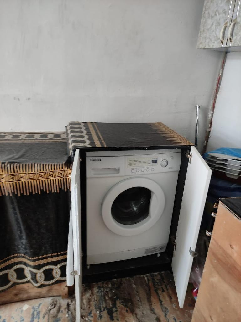 - Диван, кухня, стеллаж, стол, стул, водонагреватель, стиральная машина остаются