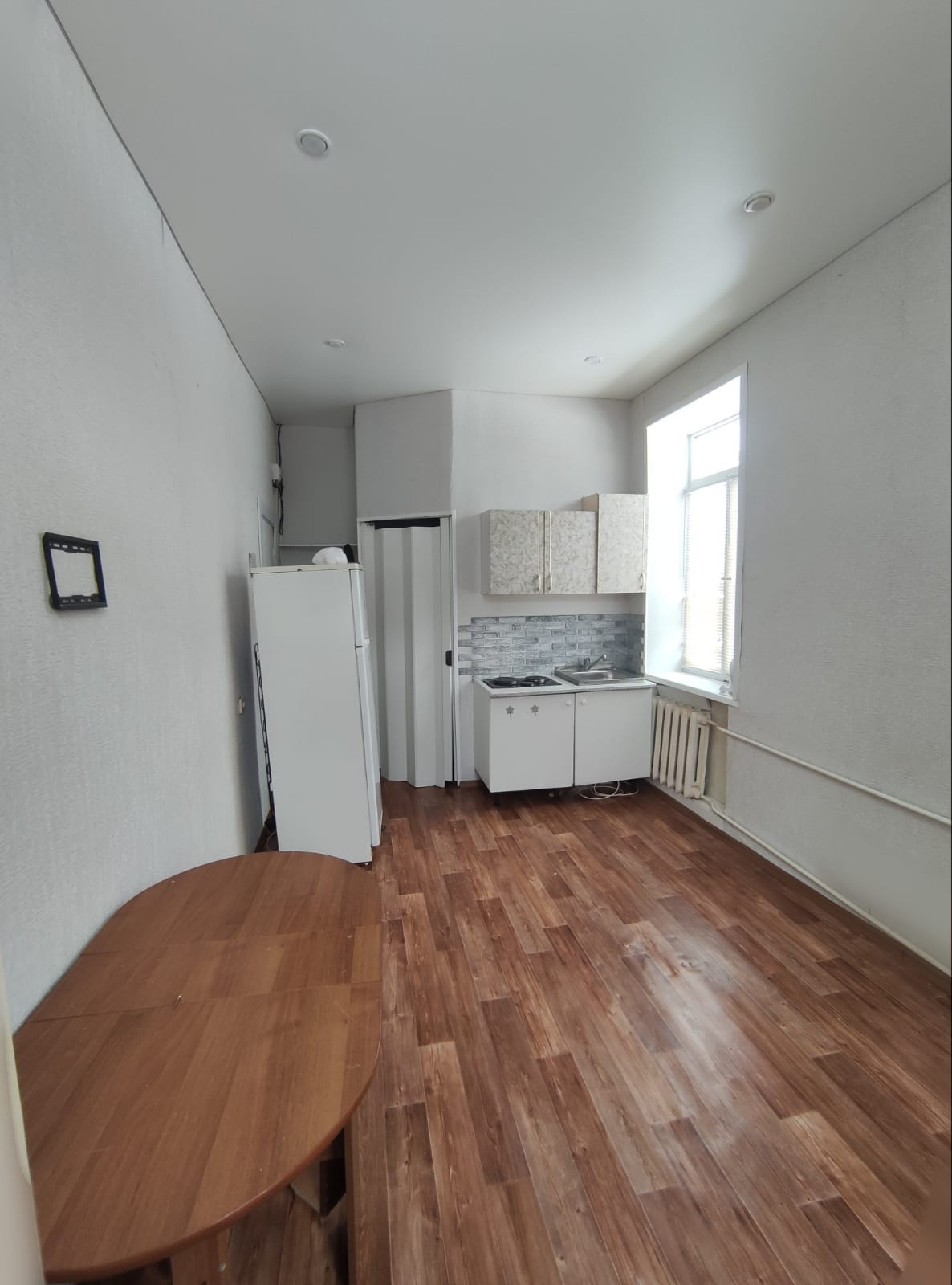 Квартира-студия на 2 теплом этаже, очень светлая, 2 окна, высокие потолки 3 м, сталинский проект. В данный момент проходит капремонт дома (обновили кровлю, освежают фасад)