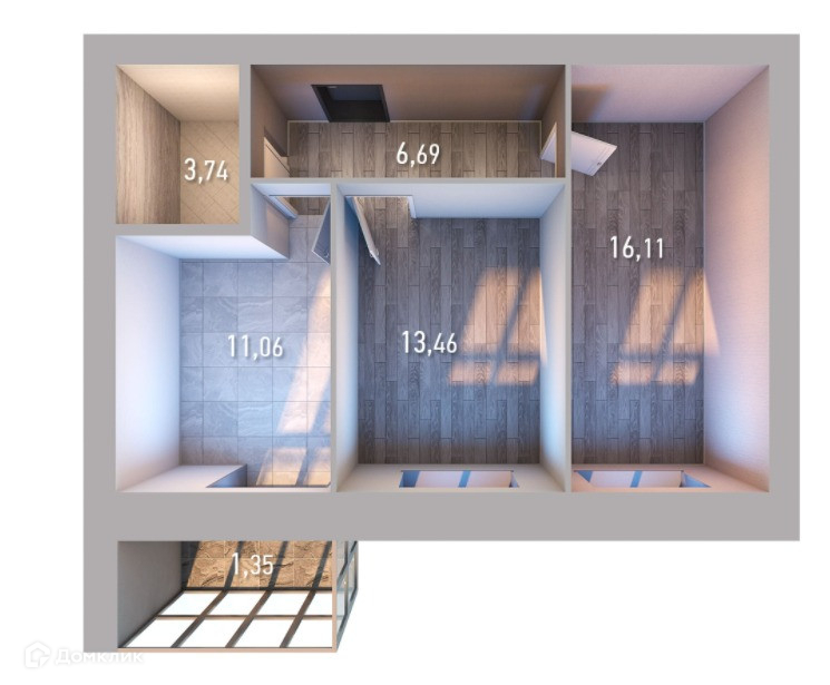 - Комнаты 16 и 13,5 м2.