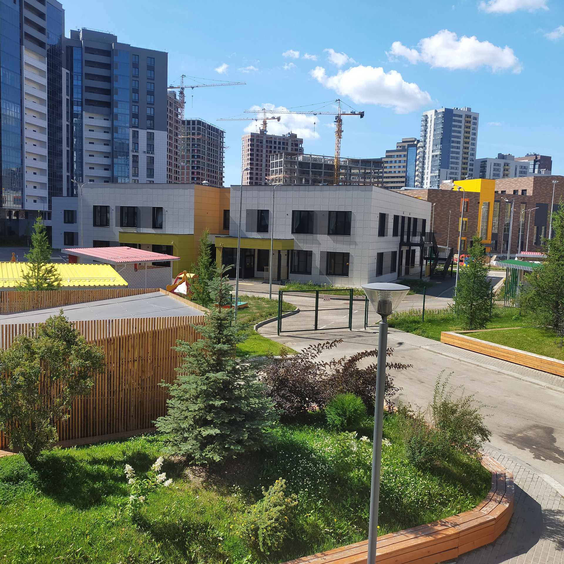 Для жителей данного жилого комплекса предусмотрена шикарная территория: современные детские, спортивные площадки, прогулочные зоны, крытая детская игровая зона (на случай непогоды), зал йоги и фитнеса, кинотеатр, коворкинг, лаунж-зона с красивыми видами. На территории ЖК есть детский сад и строится современная школа.