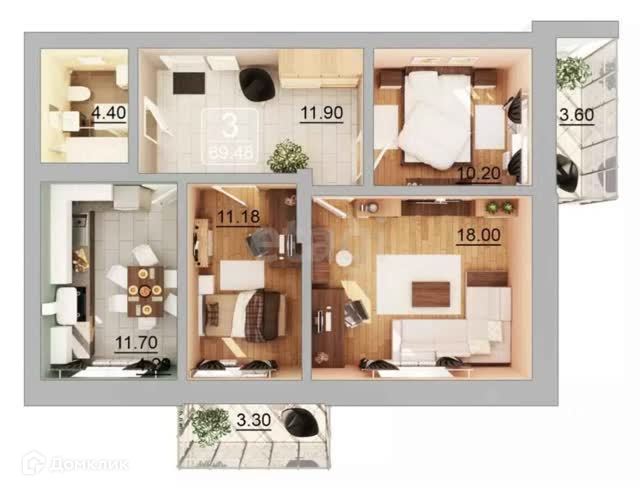 Общая площадь 70.2 м2