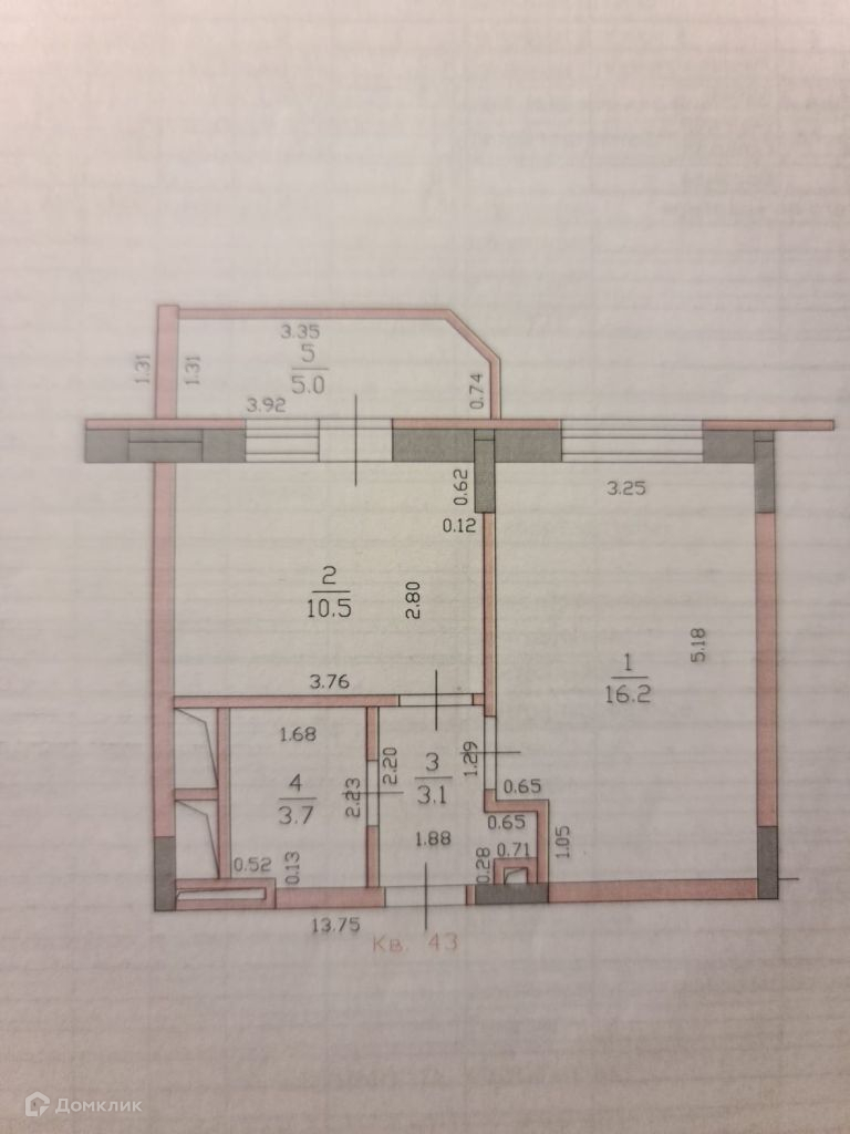 Жилая площадь 16.2 м2