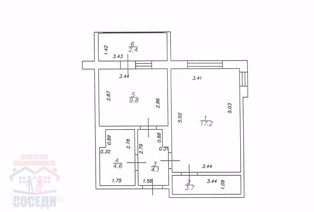 Общая площадь 41.8 м2