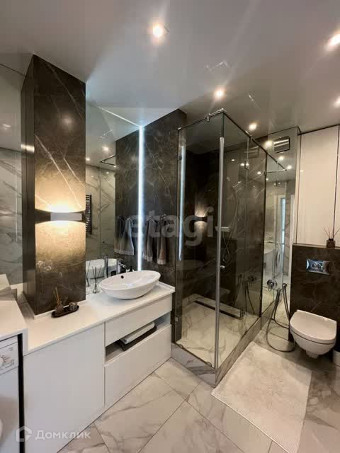 В ванной просторная душевая. Качественный гарнитур. Хорошая сантехника (villeroy boch),тёплые полы.