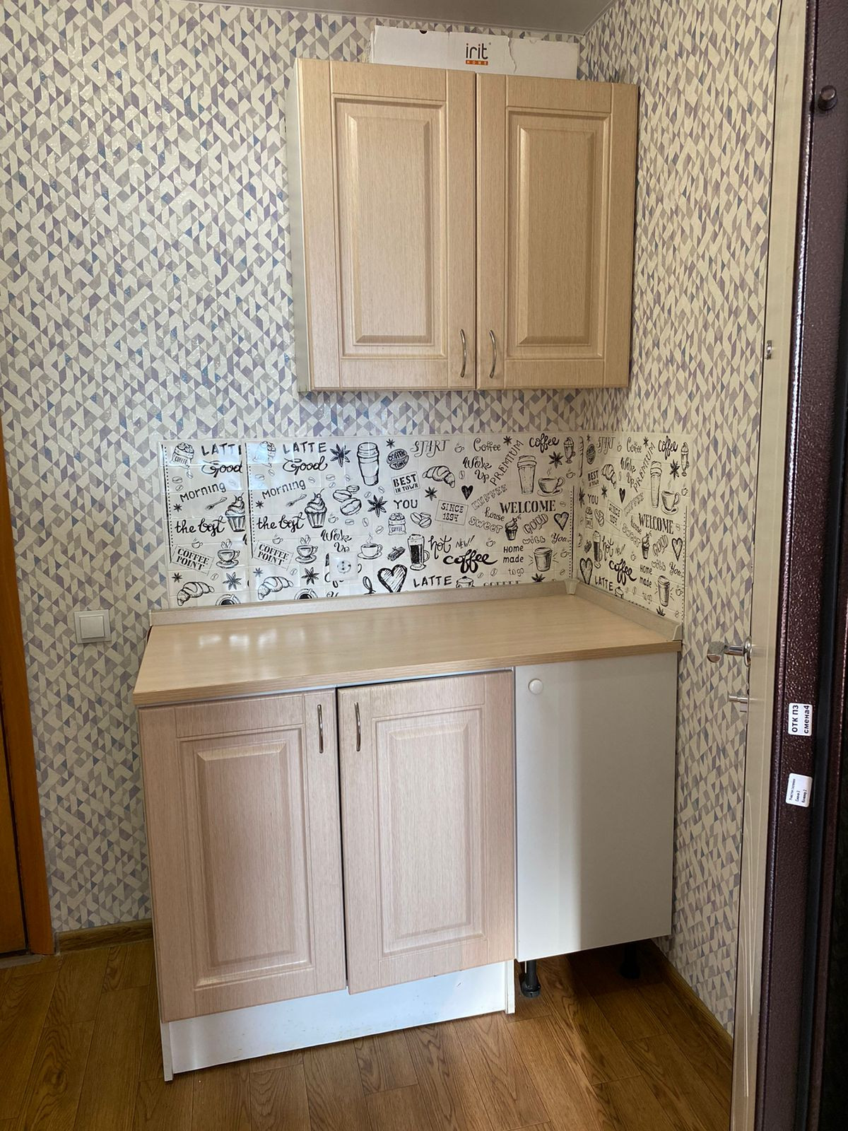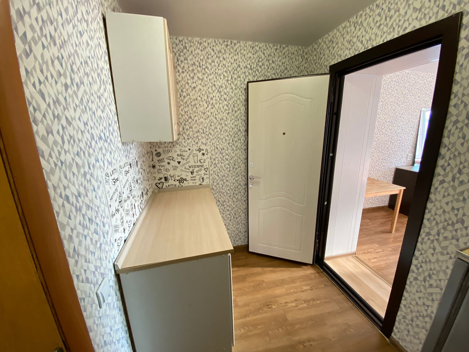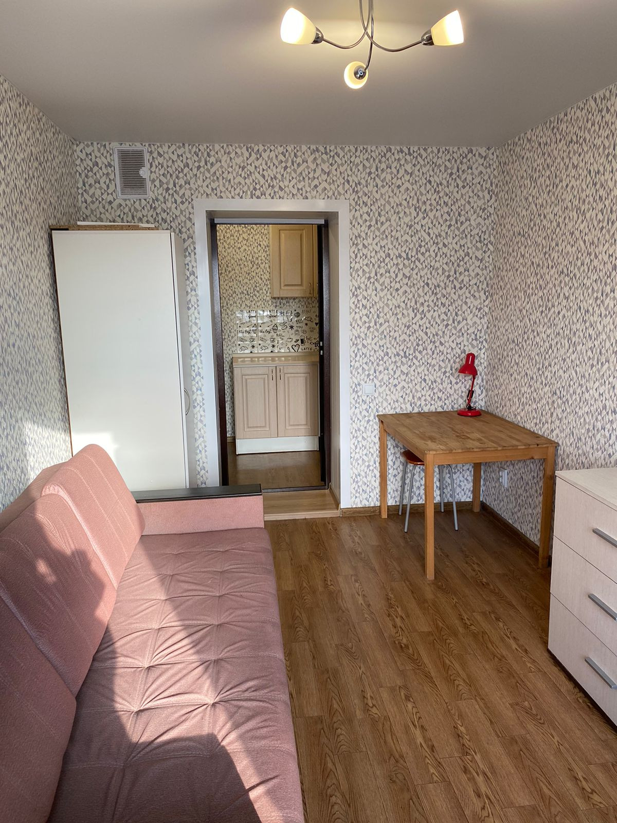 с хорошим ремонтом, проводка поменяна. Остаётся всё: диван, сушилка, чайник, шкаф, кухня, холодильник, плитка электрическая. Кроме стола, табуретов и стиральной машины.