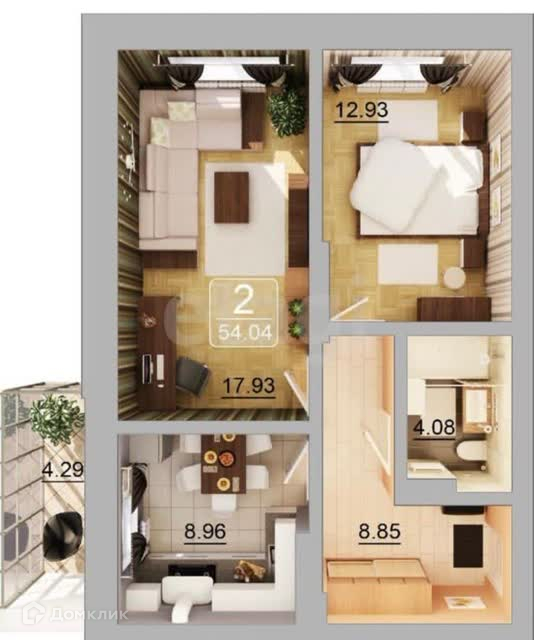 Общая площадь 54 м2