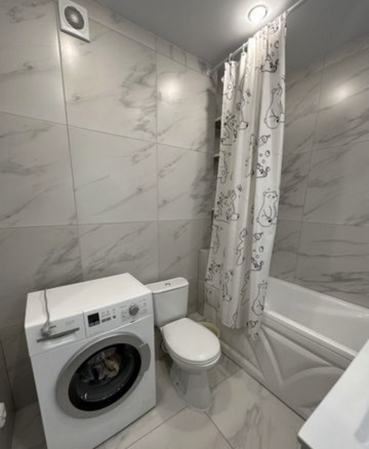 Ремонт в светлых теплых оттенках, санузел в плитке с теплый полом (регулятор).