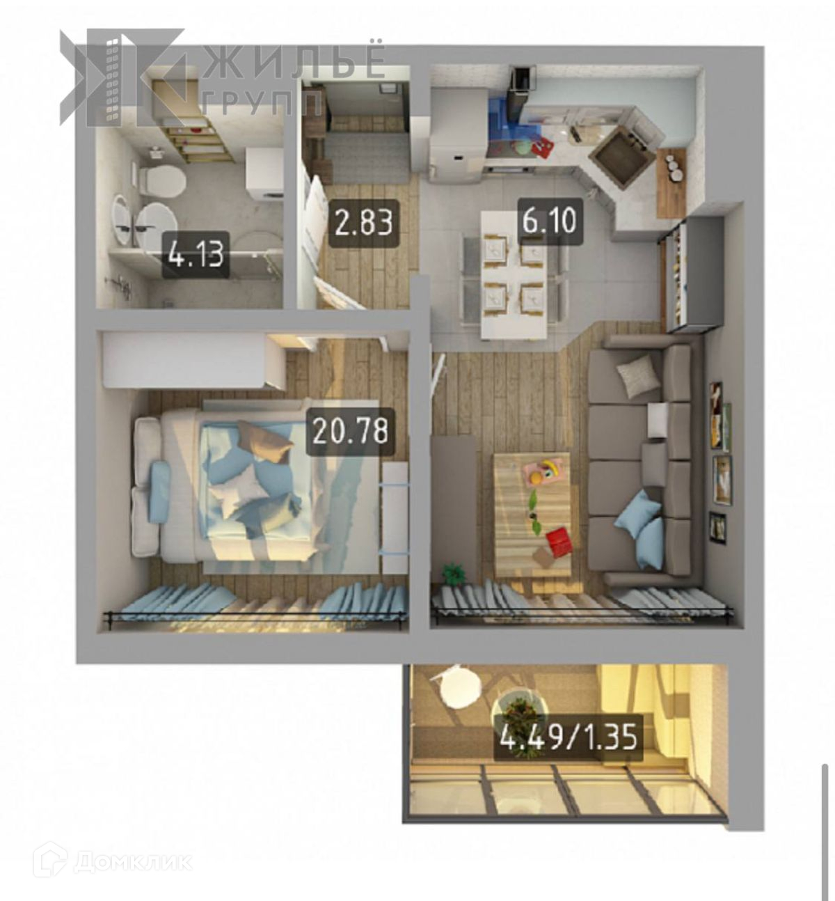 Жилая площадь 20.78 м2