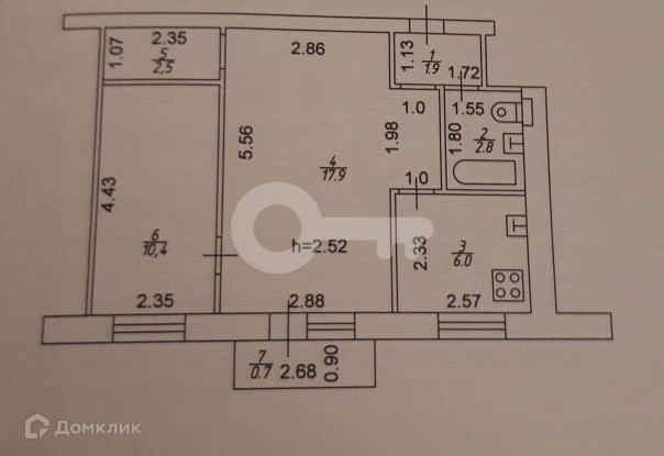 Жилая площадь 28.3 м2