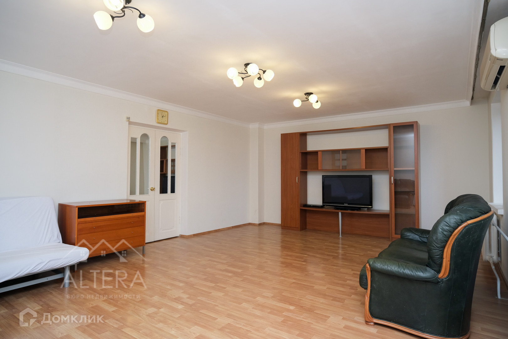 -В квартире остается: кухонный гарнитур со встроенной техникой, сервант в столовой, кондиционер, кровати в шкафы в спальных комнатах.