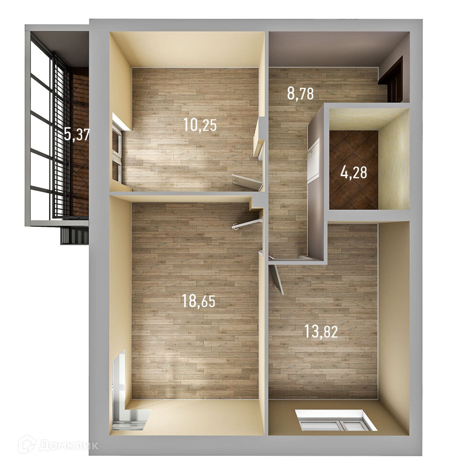 Общая площадь 57 м2