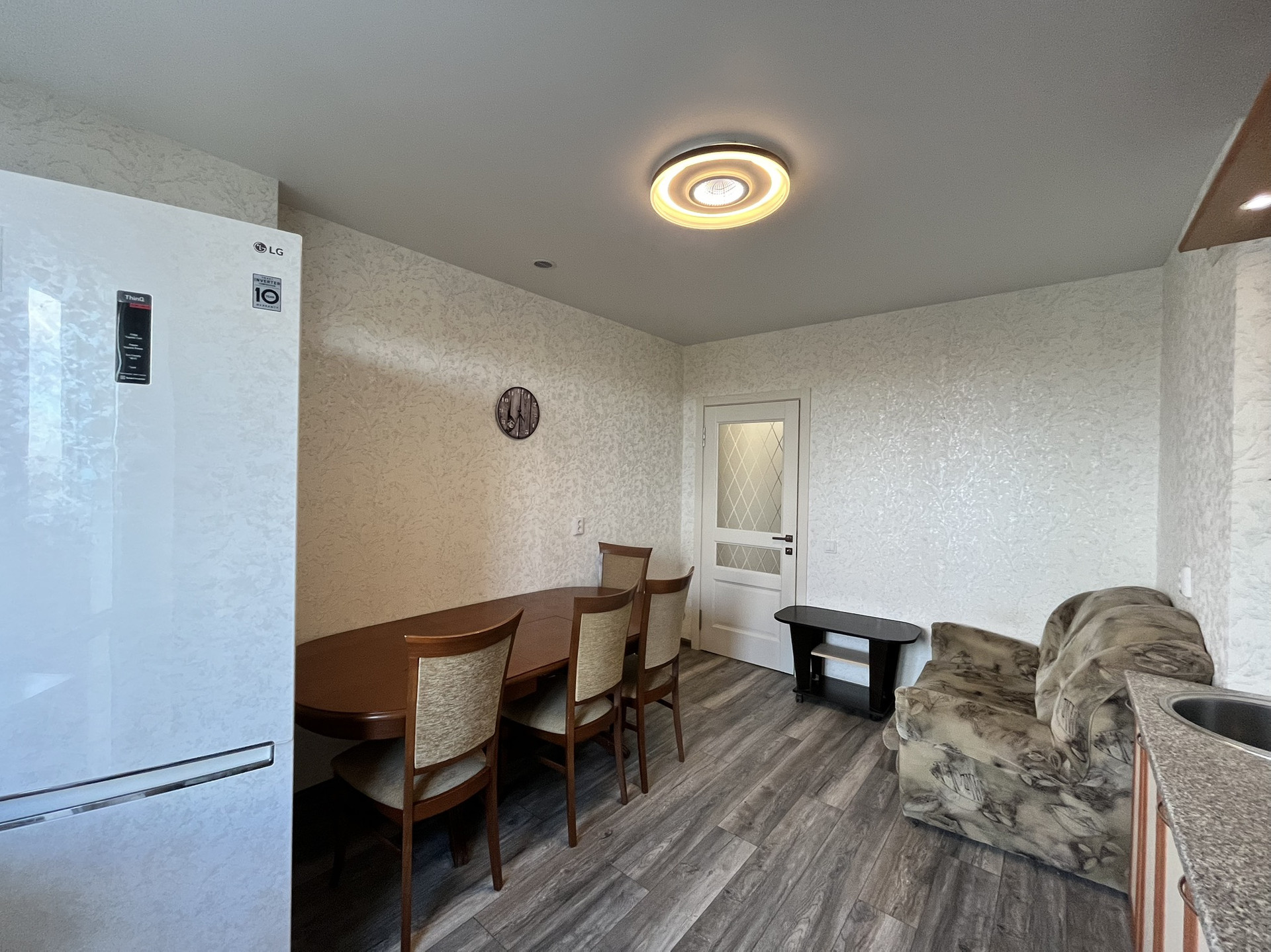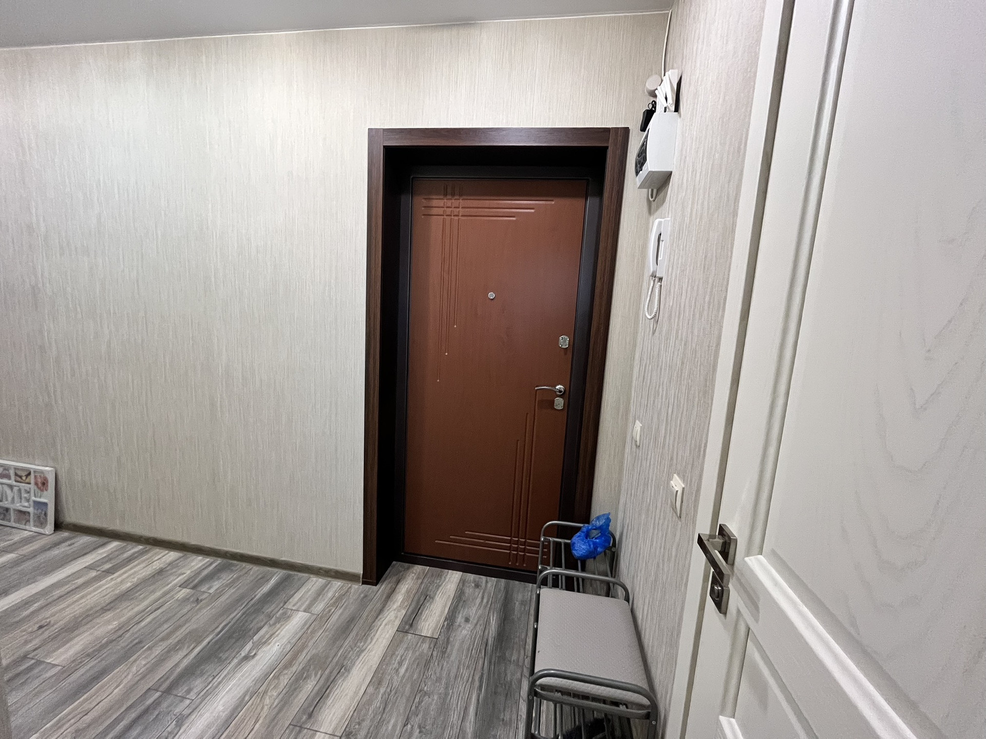В квартире сделан аккуратный косметический ремонт, на полу ламинат, стены - обои, санузел кафельная плитка. Окна пластиковые. Хорошие межкомнатные двери. В квартире практически все остается, а именно: в комнате: стенка, кровать; кухня: кухонный гарнитур, диван, журнальный стол, обеденный стол со стульями, микроволновая печь, телевизор, холодильник (по договоренности), стиральная машина.