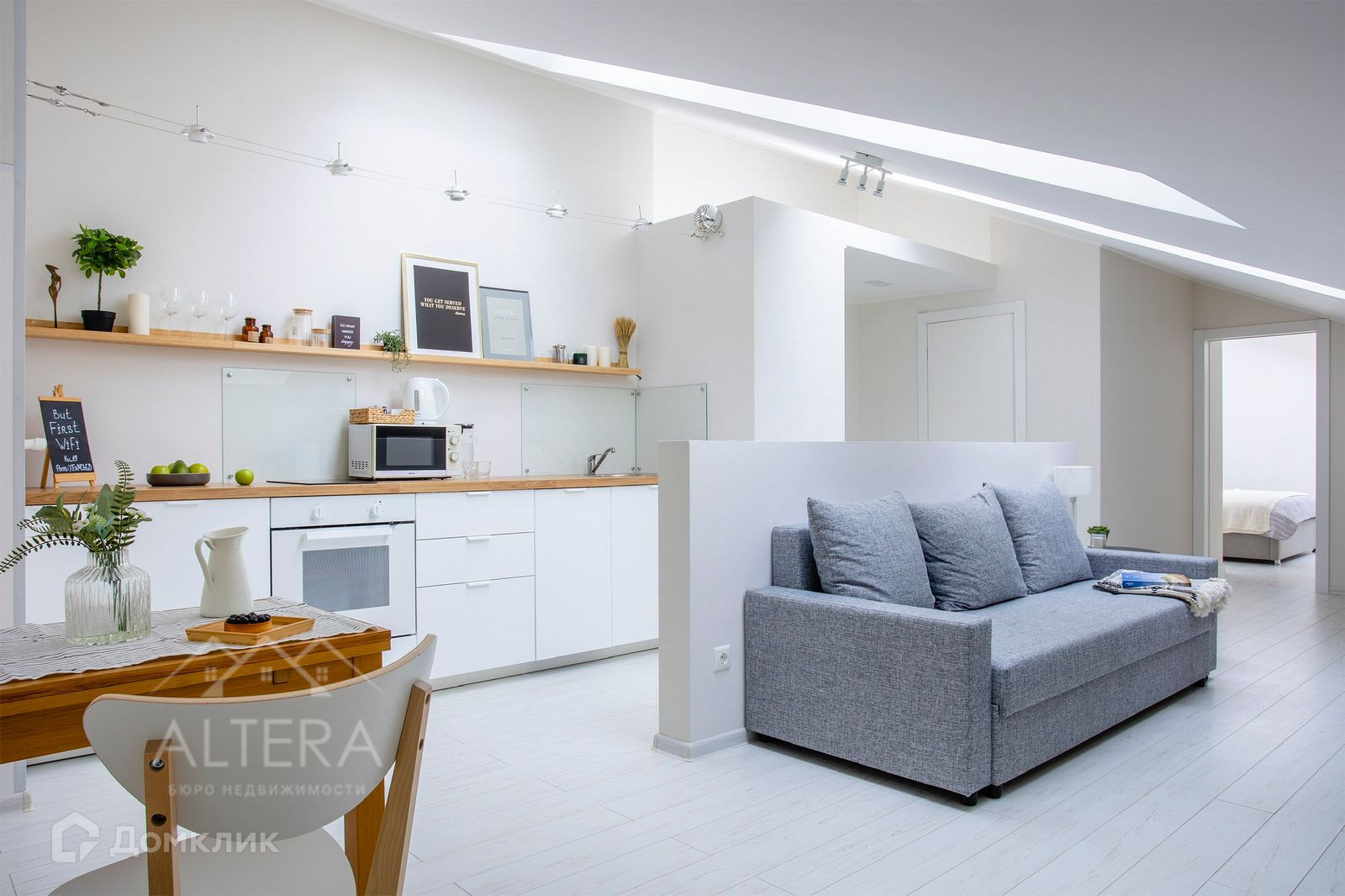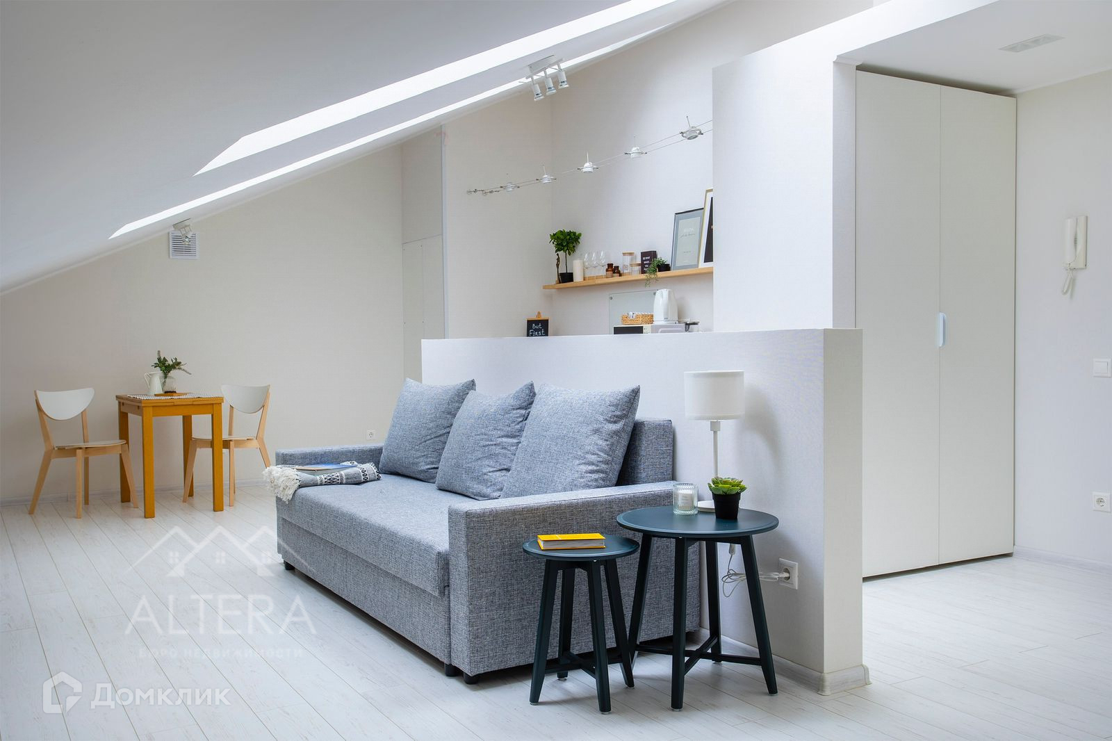 Две мансардные квартиры. Светлый лаконичный современный дизайн, окна на потолке, свойственные мансардным этажам. Евродвухкомнатная и евротрехкомнатная.
