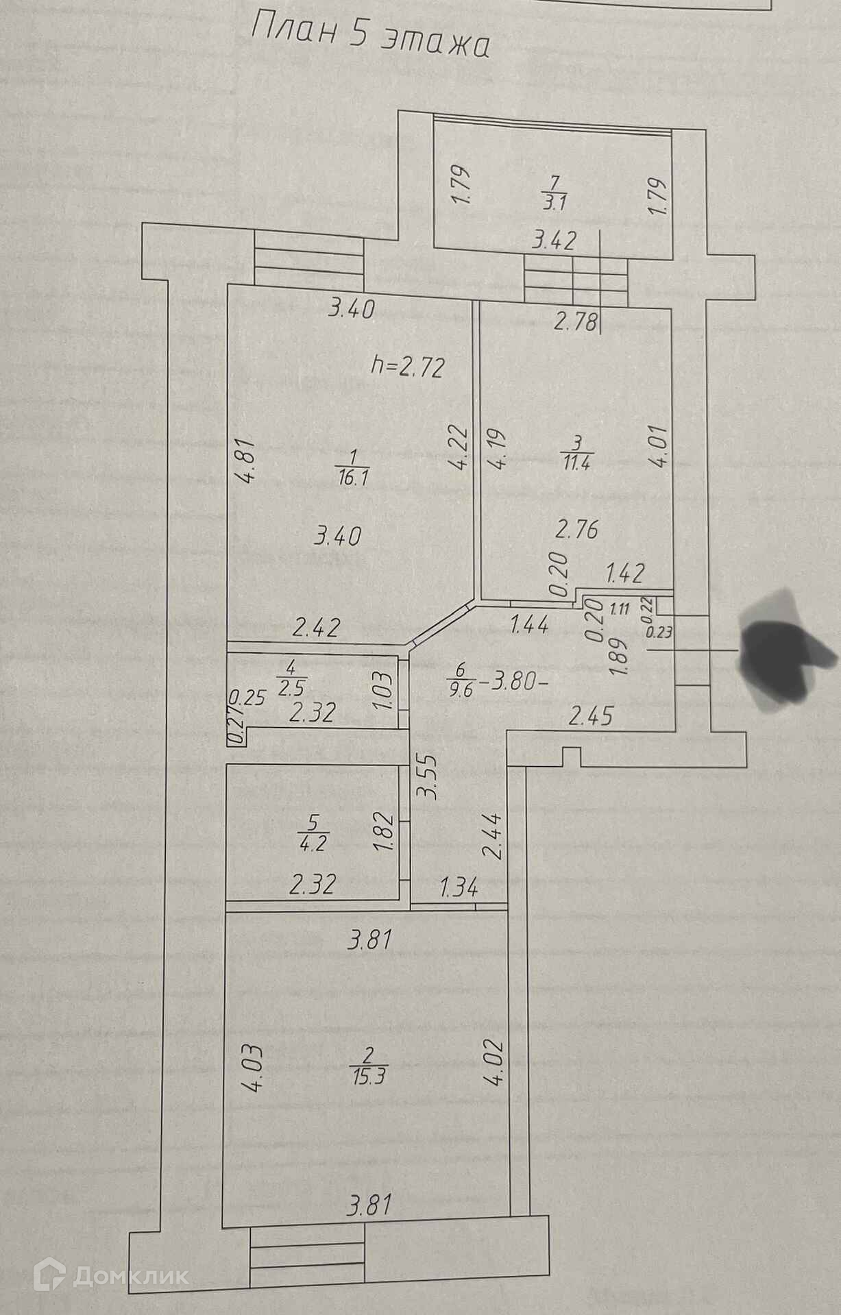 Балкон, лоджия 1 балкон