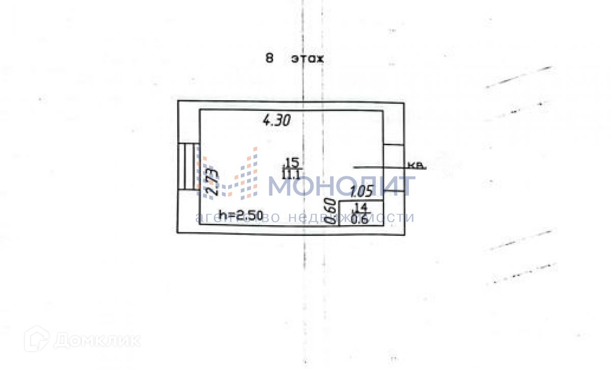 1-комнатная квартира, 13 м2, этаж 8 / 9, на продажу в Казани, улица Сафиуллина, 8