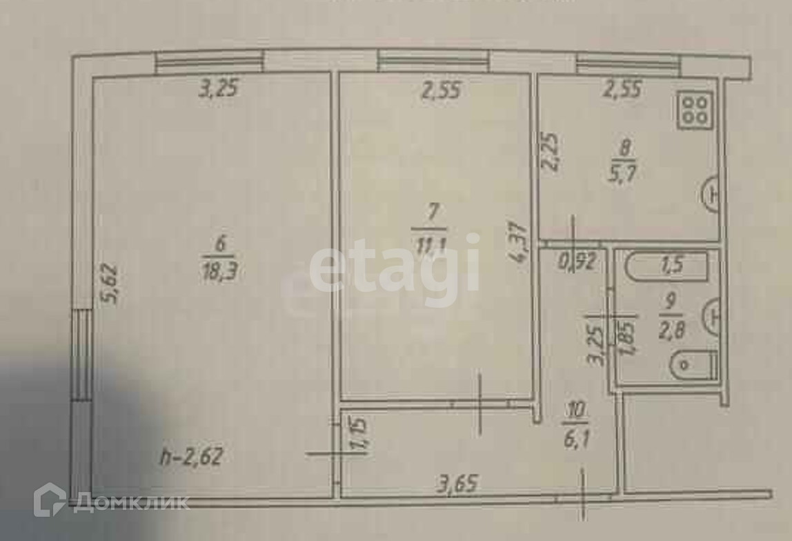 Балкон, лоджия 1 балкон
