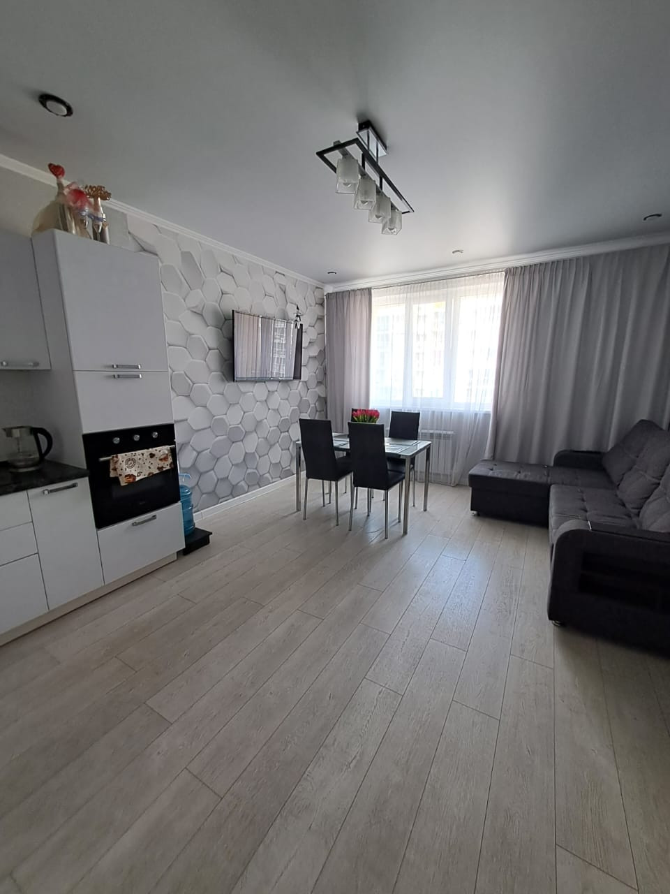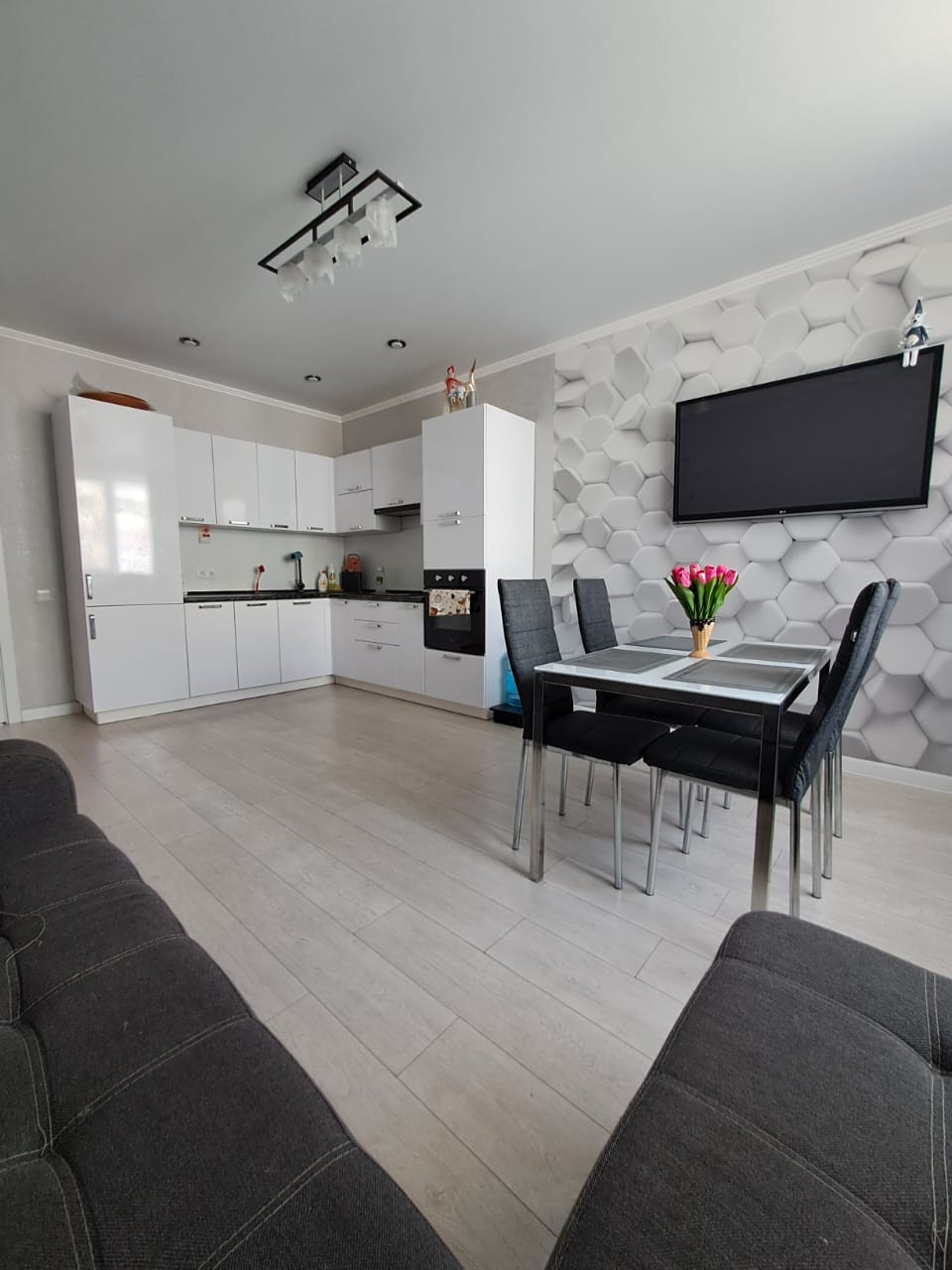 В квартире сделан качественный дизайнерский ремонт, мебель по индивидуальным заказам.