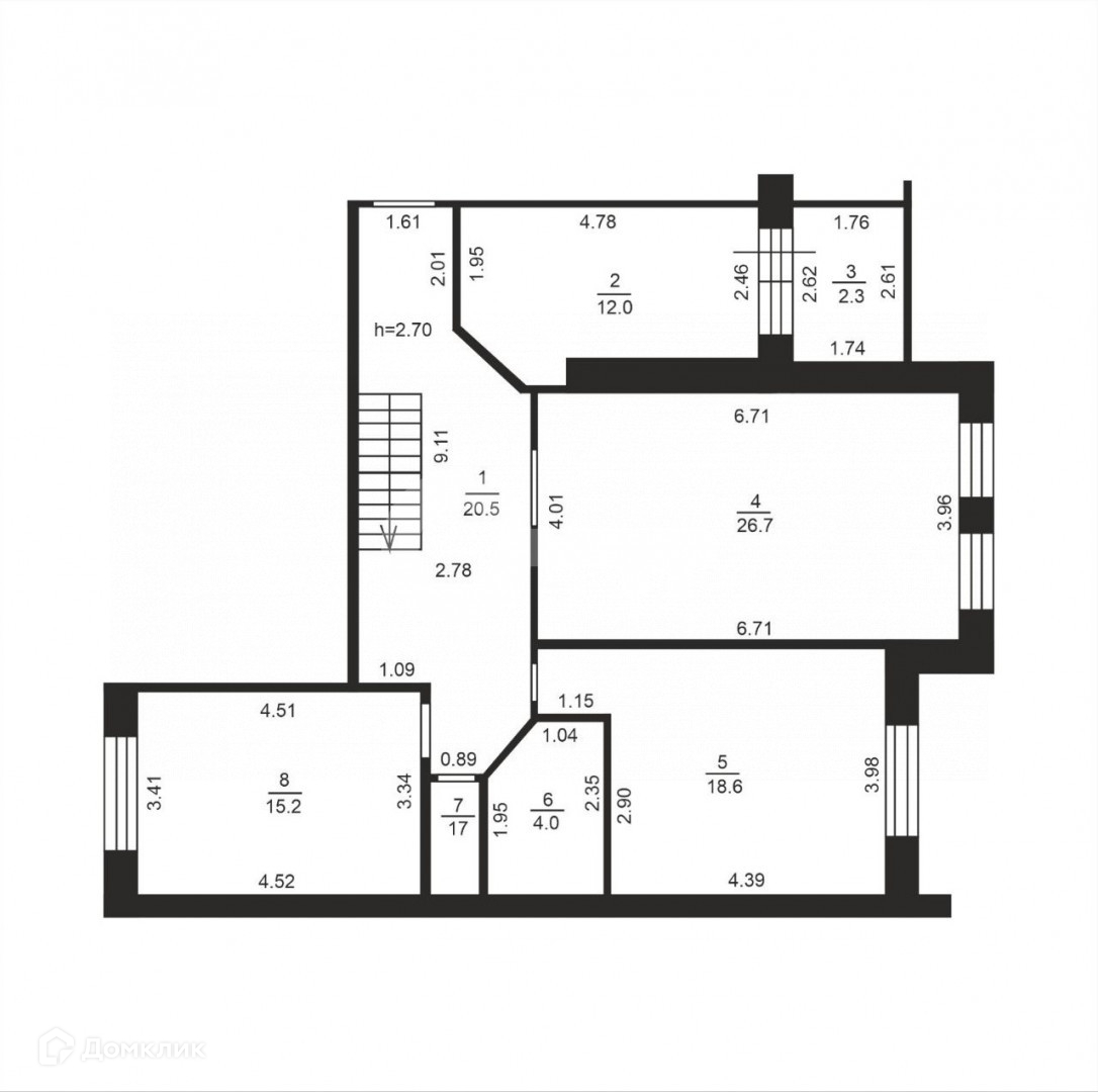 Общая площадь 195,2 м2, 7 изолированных комнат, общей площадью 125 м2+ кухня-гостиная 27 м2, все комнаты правильной квадратной формы