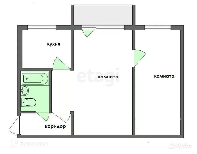 2-комнатная квартира, 41.8 м2, этаж 5 / 5, на продажу в Казани, Главная улица, 68