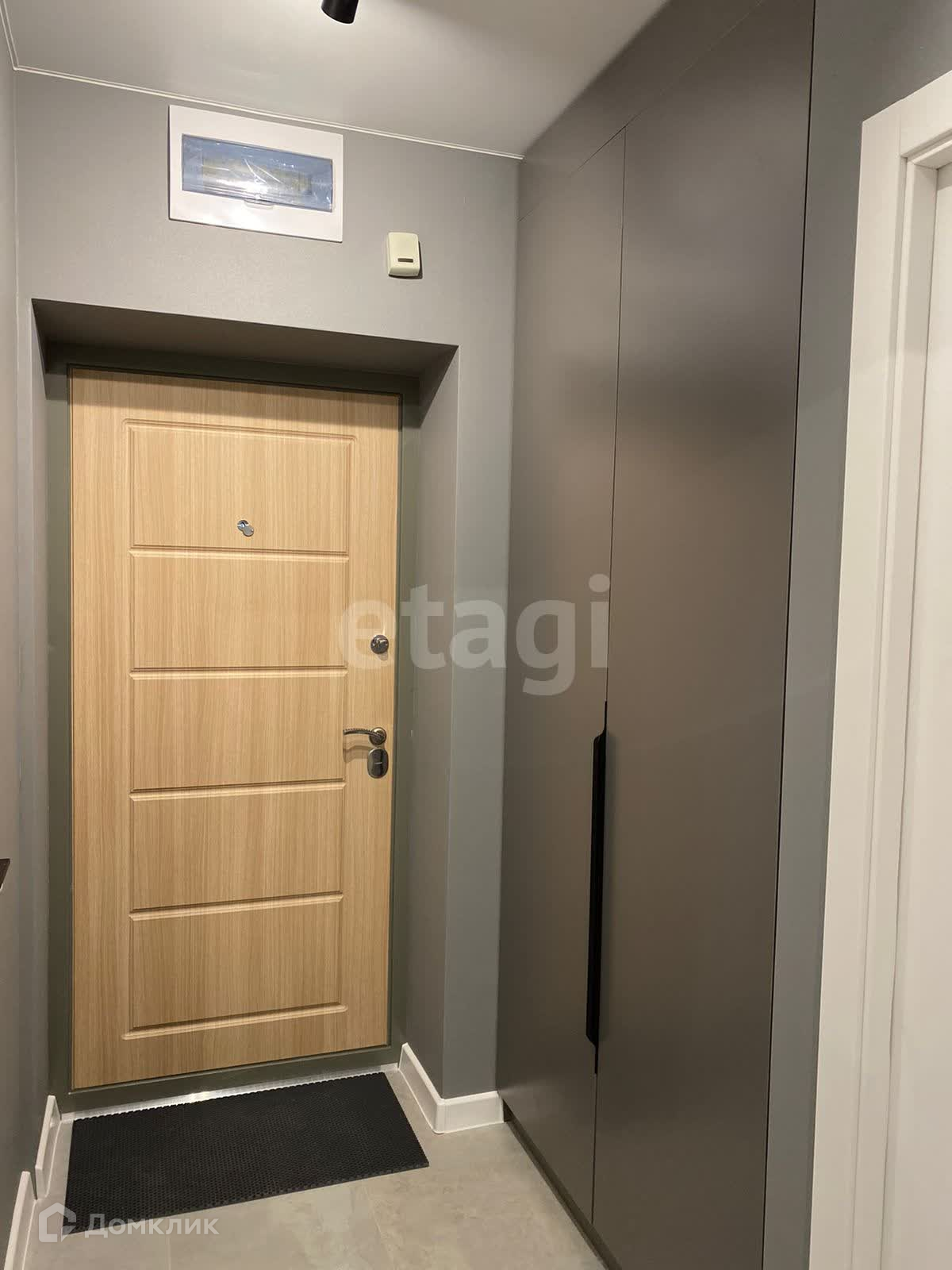 Прихожая с большим встроенным шкафом для хранения вещей.