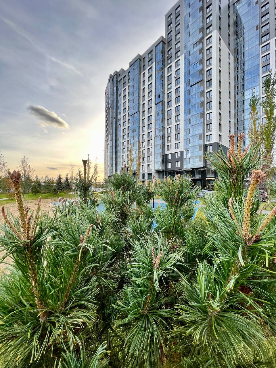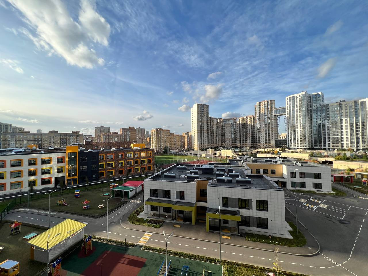 ЖК организован по принципу двор без машин, где на территории двора расположились: детский сад, лицей с бассейном, коворкинг, детская комната, прогулочный парк, спортивные площадки.
