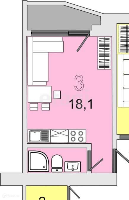 Общая площадь 18.1 м2